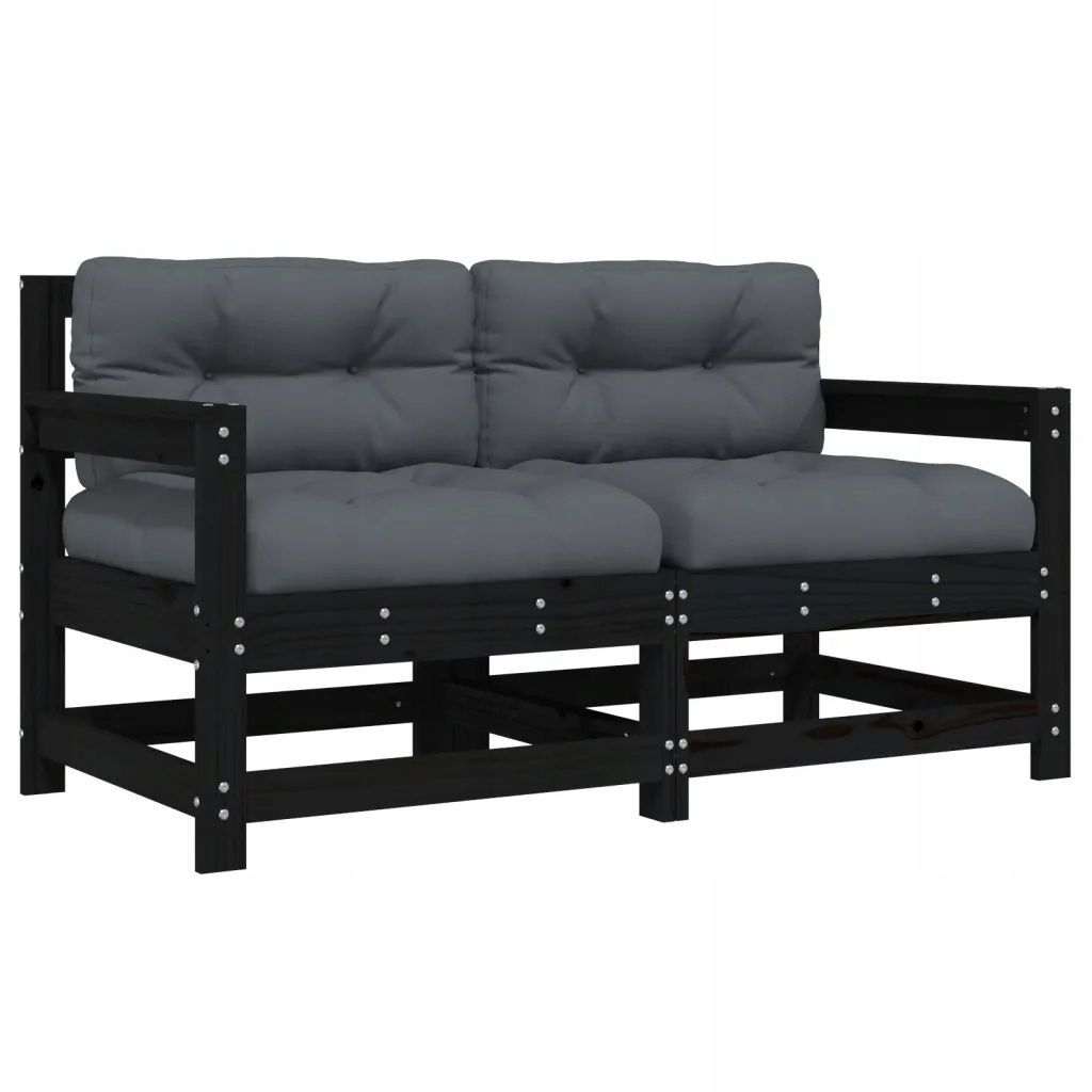 Крісла садові з подушками 2шт, чорні, масив сосни