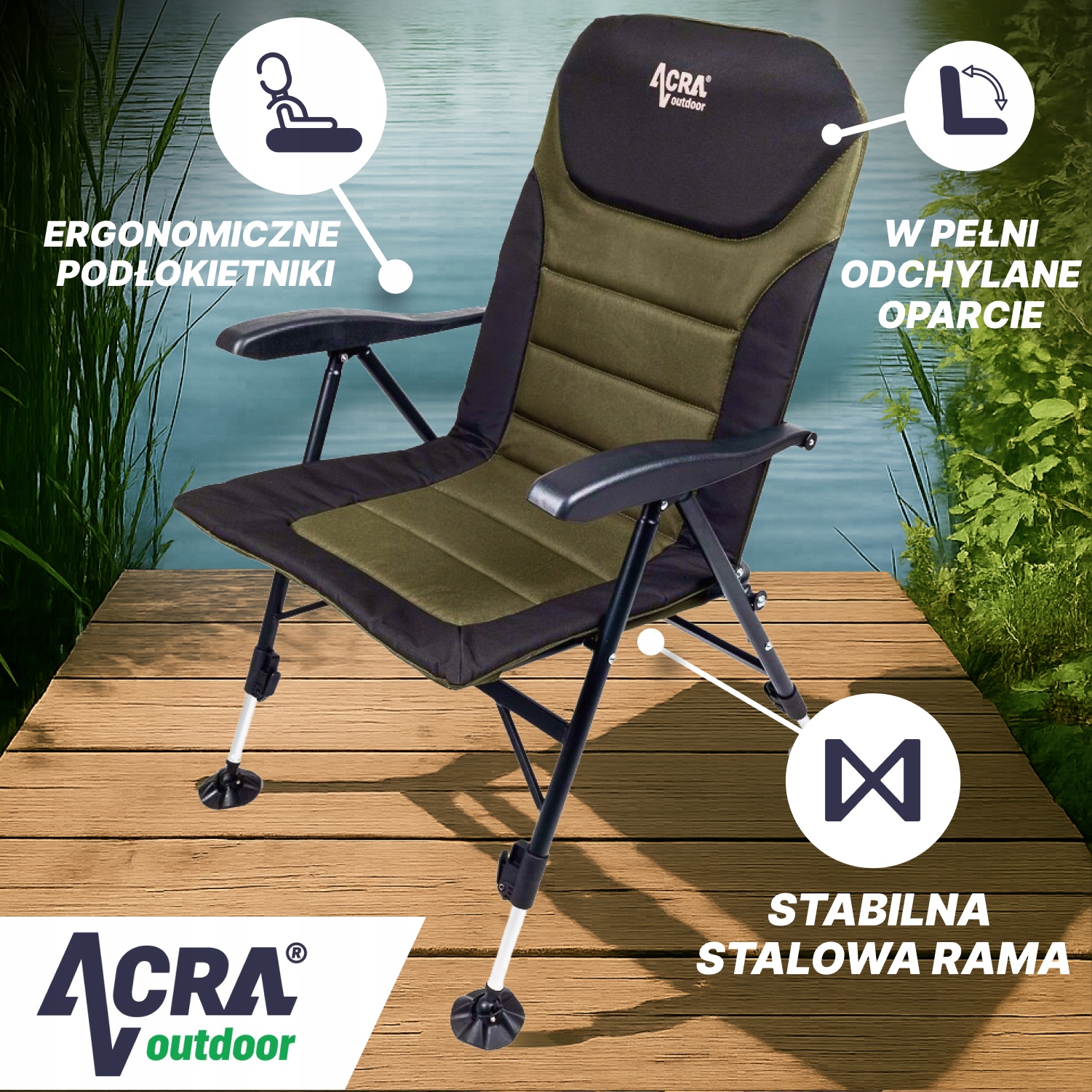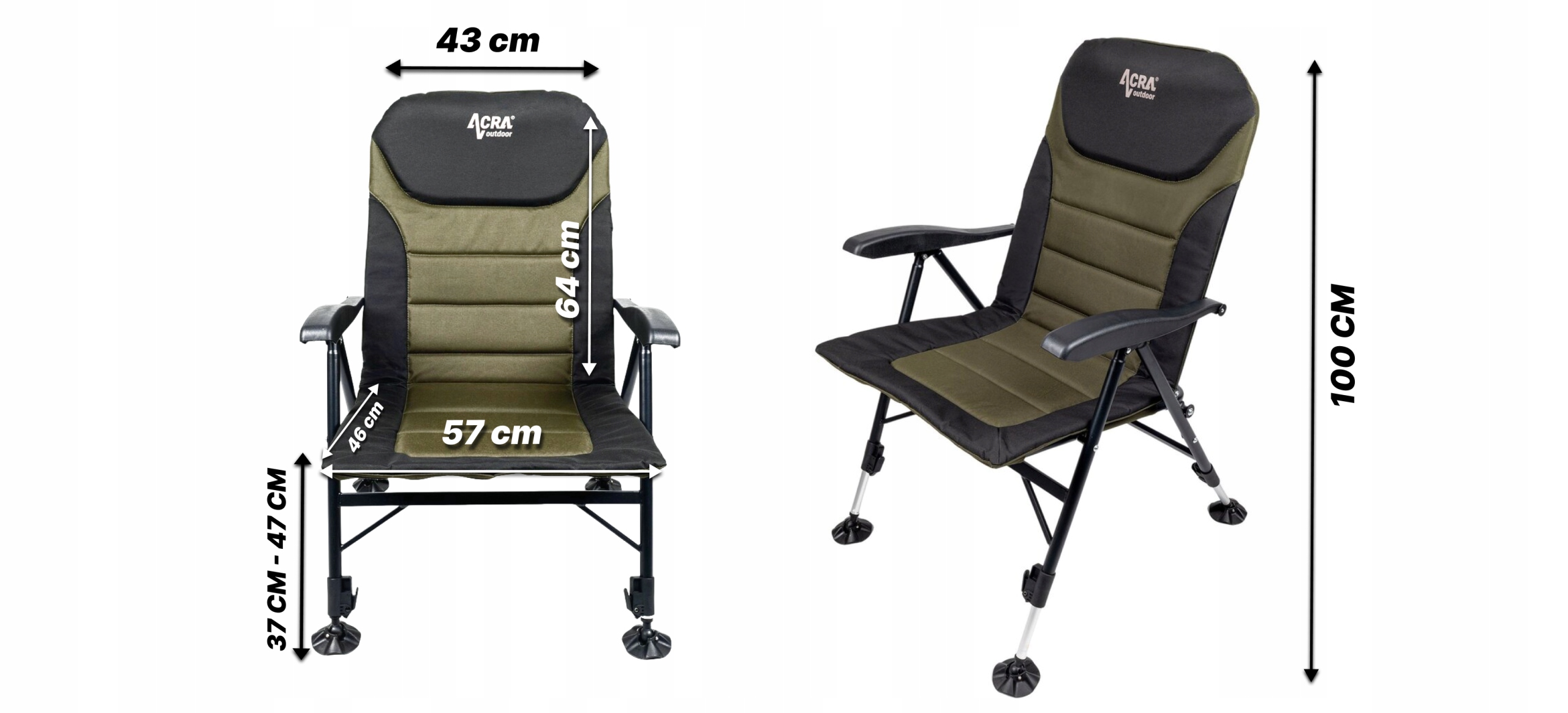 Комфортное кресло ACRA Outdoor — лучший компаньон для рыбалки, кемпинга и отдыха в саду. Благодаря роскошному наполнению и регулировке жесткости сиденья вы сможете настроить его именно под свои предпочтения. Более того, вы можете легко переместить их и удобно упаковать в свой автомобиль или кемпер.