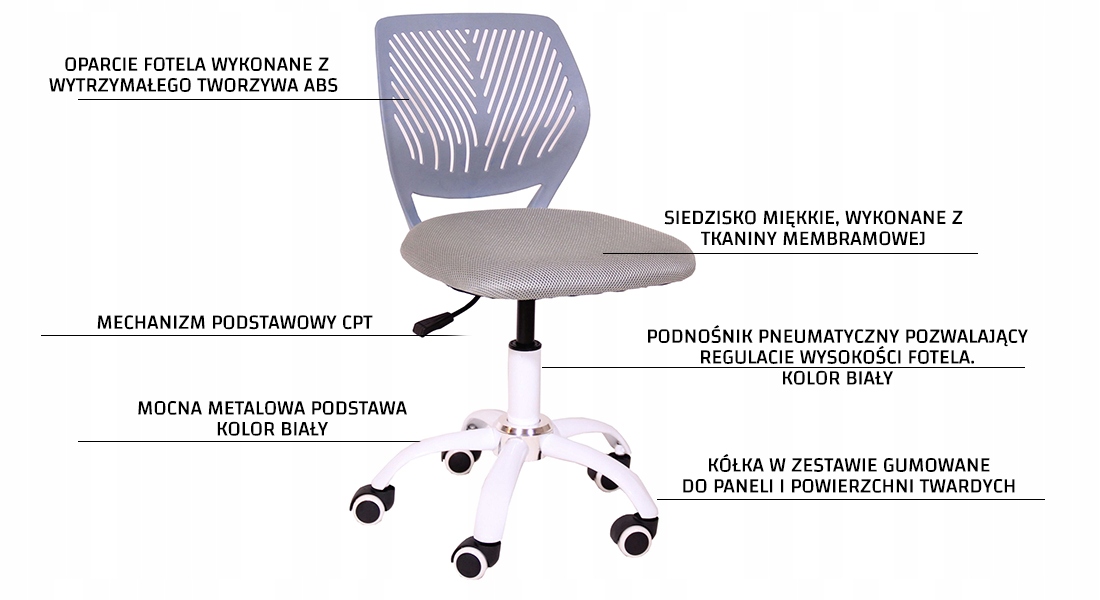 ВРАЩАЮЩИЙСЯ НАСТОЛЬНЫЙ СТУЛ BALI, БЕЛЫЙ, СЕРЫЙ ЦВЕТ
