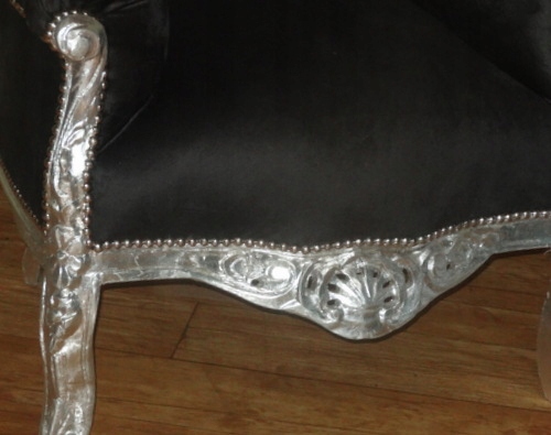 Крісло бароко Стильне сріблясто-чорне сидіння