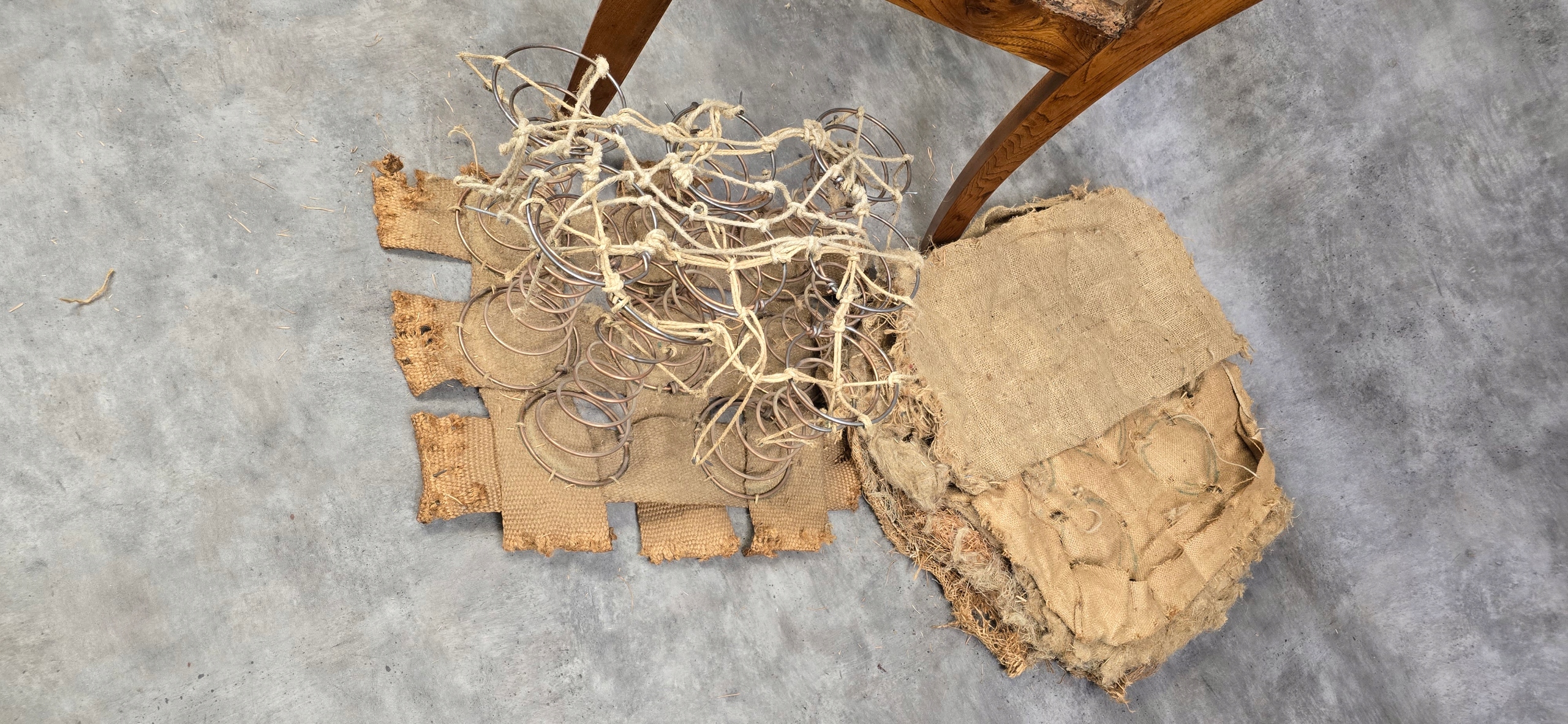 - Обивка требует отделки - оригинальные пружины с ремнями, канвас по форме обивки и наполнитель из морских водорослей. консервированные, которые можно использовать для ремонт.