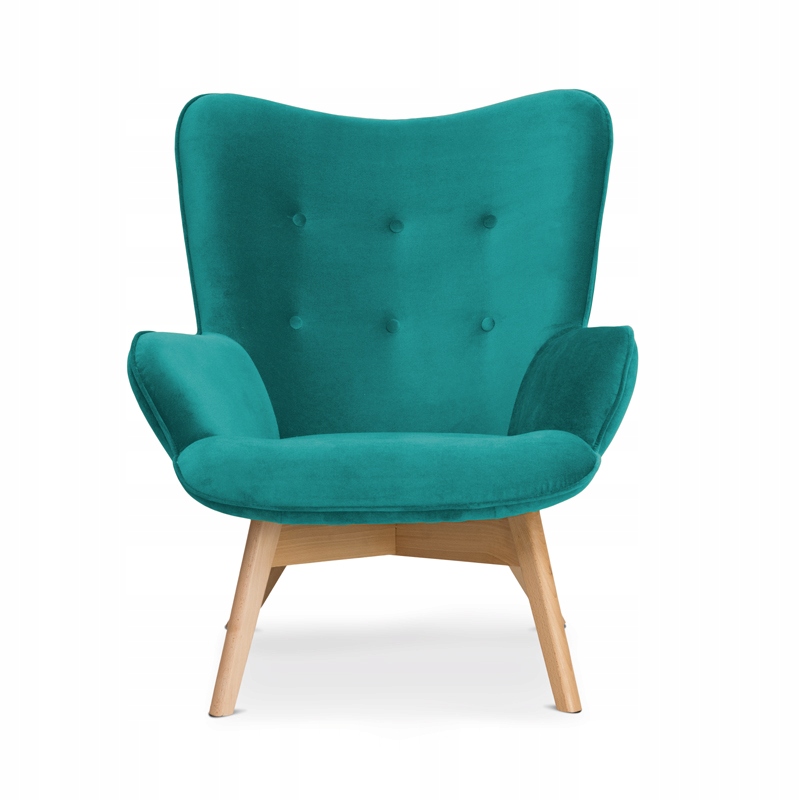 Кресло в скандинавском стиле с деревянными ножками цвета бука / темный орех/белый/черный. Вся вещь украшена стегаными пуговицами того же или контрастного цвета. Закончено эстетичной окантовкой. Сзади имеется молния, позволяющая снять материал.