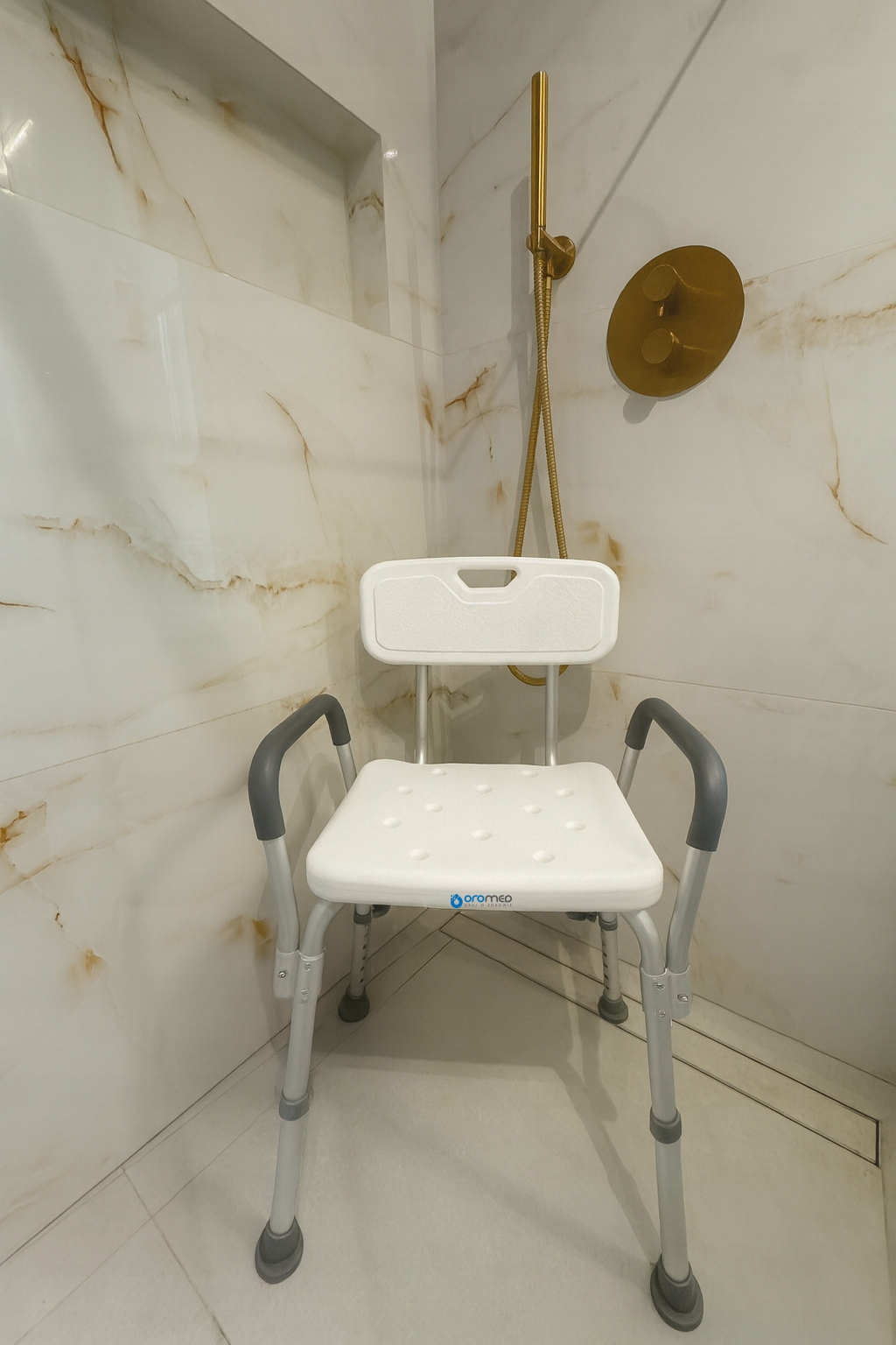 Кресло для душа со спинкой – это функциональный и удобный табурет для ванной комнаты, обеспечивающий устойчивость, безопасность и комфорт во время ежедневной гигиены. Разработанный специально для пожилых людей, инвалидов и людей с ограниченной подвижностью, он облегчает купание в ванне или душе – без риска поскользнуться или потерять равновесие.