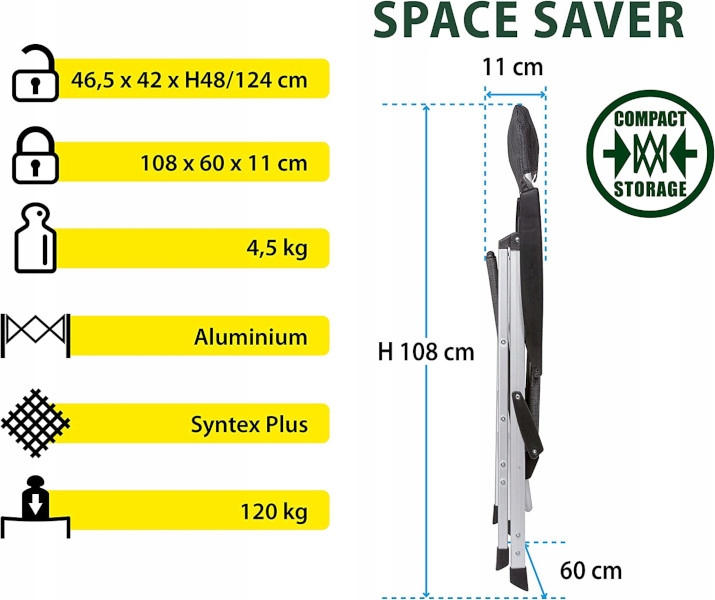 - Размеры в сложенном виде: 60 х 108 х 11 см.
