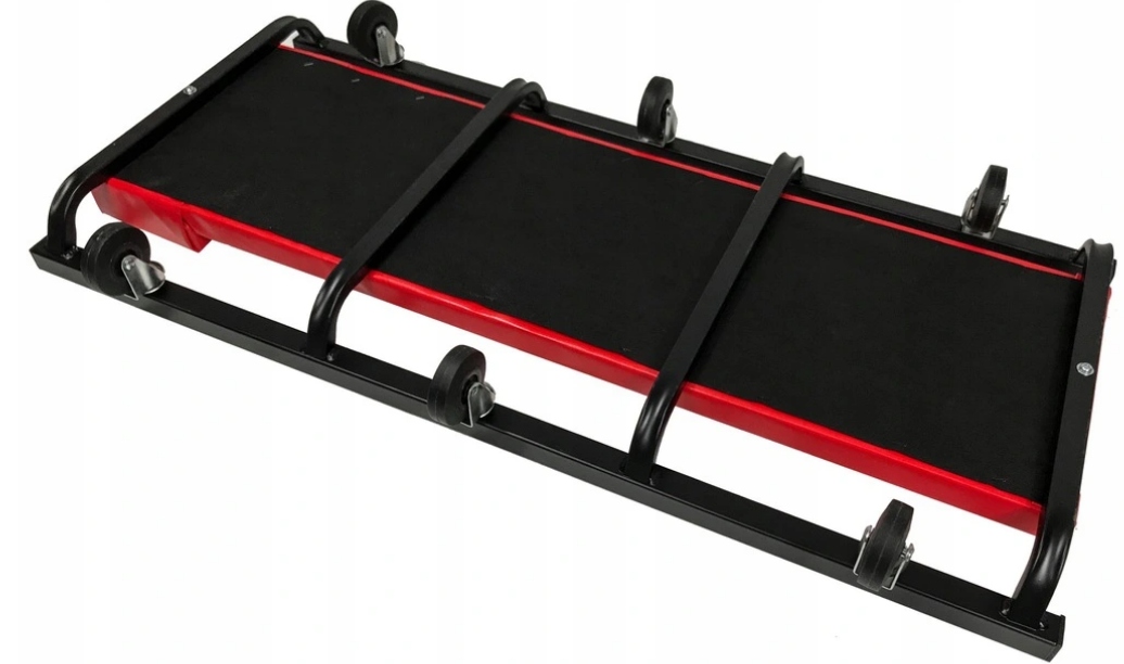 Металлическая конструкция стенда для мастерской делает его незаменимым элементом оборудования автосервиса. Конструкция кушетки для мастерской основана на 6 резиновых опорных колесах, обеспечивающих движение в любом направлении.