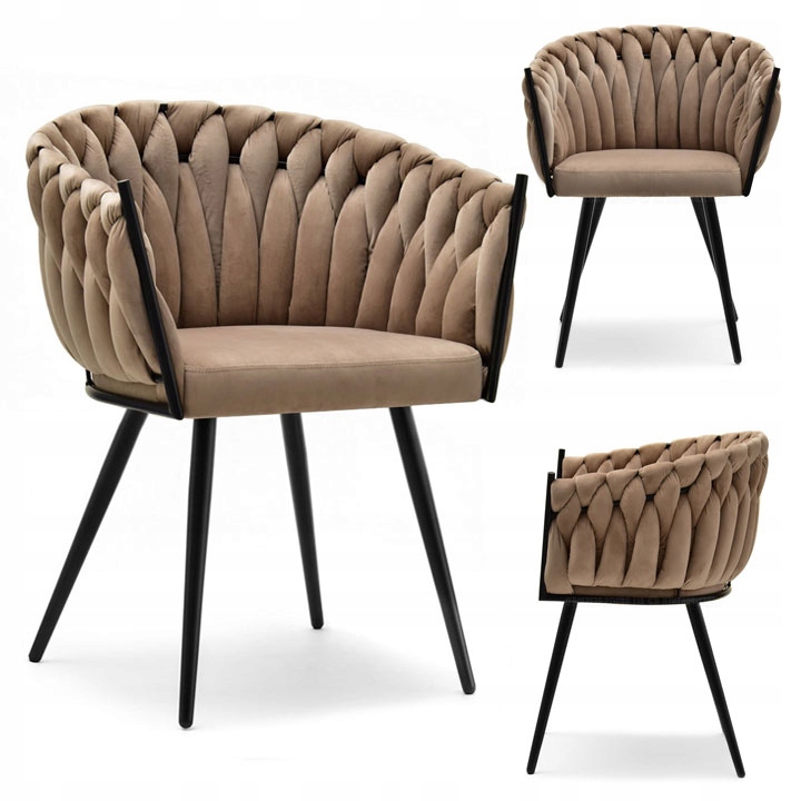 КРІСЛО ДЛЯ ВІТАЛЬНІ З ПЕРЕПЛЕТЕНОЮ СПИНКОЮ РОСА БЕЖЕВИЙ КАПУЧИНО НІЖКА ЧОРНИЙ