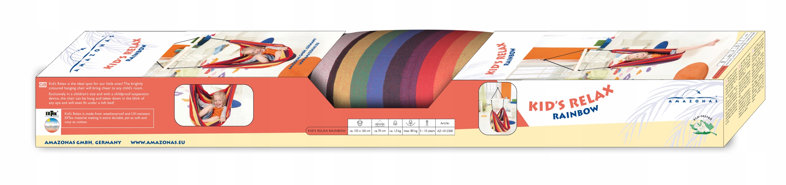 Kid's Relax настолько уютный и мягкий, что в нем можно случайно заснуть. Он изготовлен из устойчивого к погодным условиям и ультрафиолетовому излучению материала EllTex, что делает его чрезвычайно прочным. Тем не менее, ощущение 100% хлопка остается.