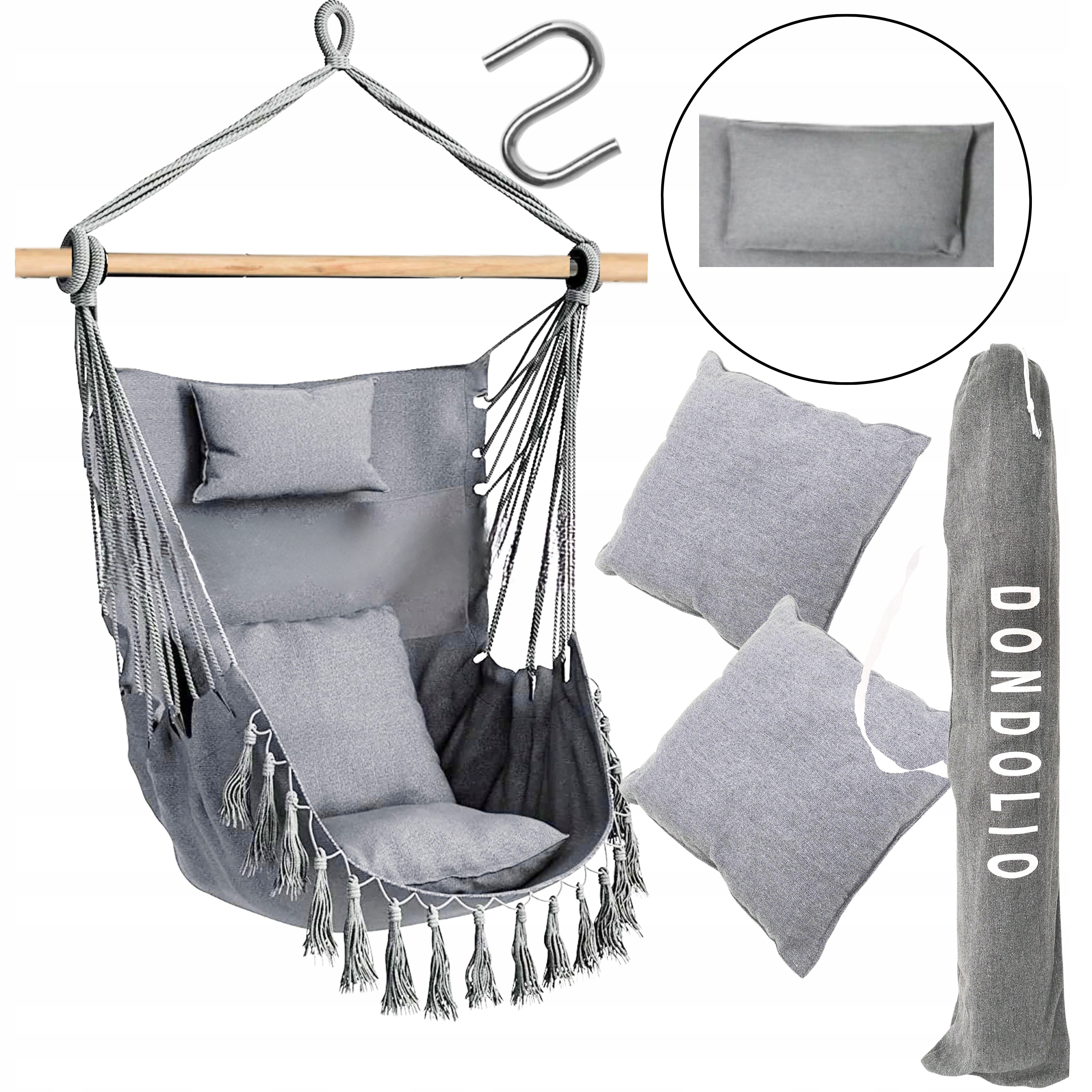 Подвесной бразильский стул-гамак, садовые качели, 3 подушки, светло-серый