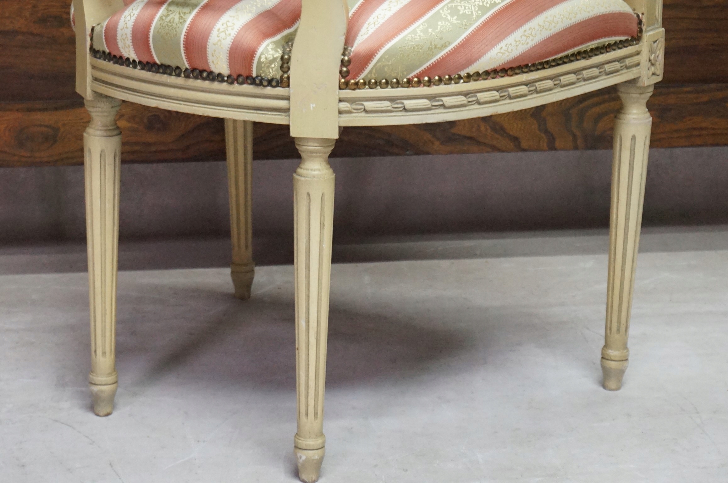 Ножки красиво фрезерована продольными бороздками, отделана декоративной резьбой.
