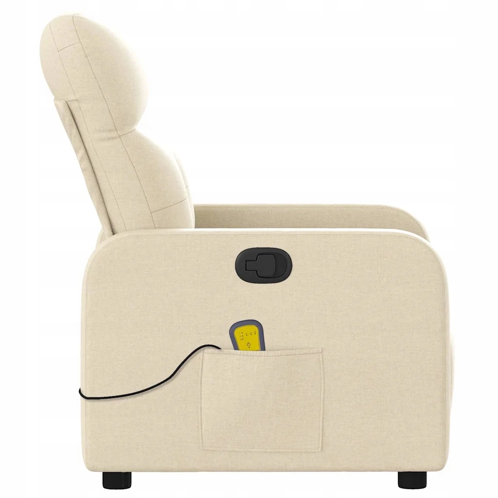 Массажное кресло с откидной спинкой, кремовое, с тканевой обивкой.