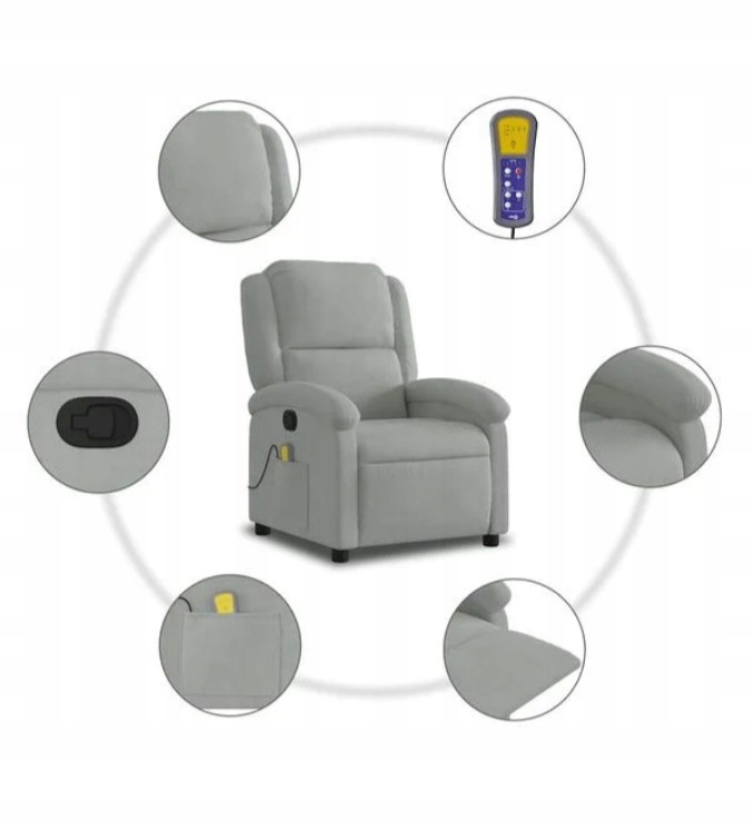 Массажное кресло с откидной спинкой, светло-серое, обито бархатом VidaXL.