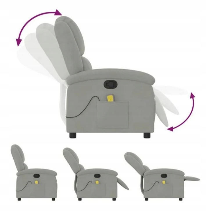 Массажное кресло с наклоном спинки, светло-серое, бархатная обивка VidaXL 371808