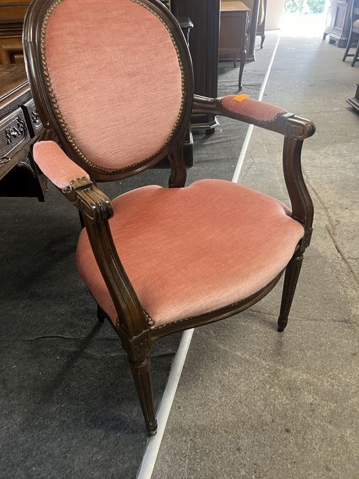 Предмет продажи — красивое кресло-медальон с подлокотниками. Устойчивый, обивка неповрежденная, дерево с незначительными нормальными следами использования. Возможность покупки в рассрочку. Возможен транспорт или самовывоз. Товар доступен в магазине в Пионках.