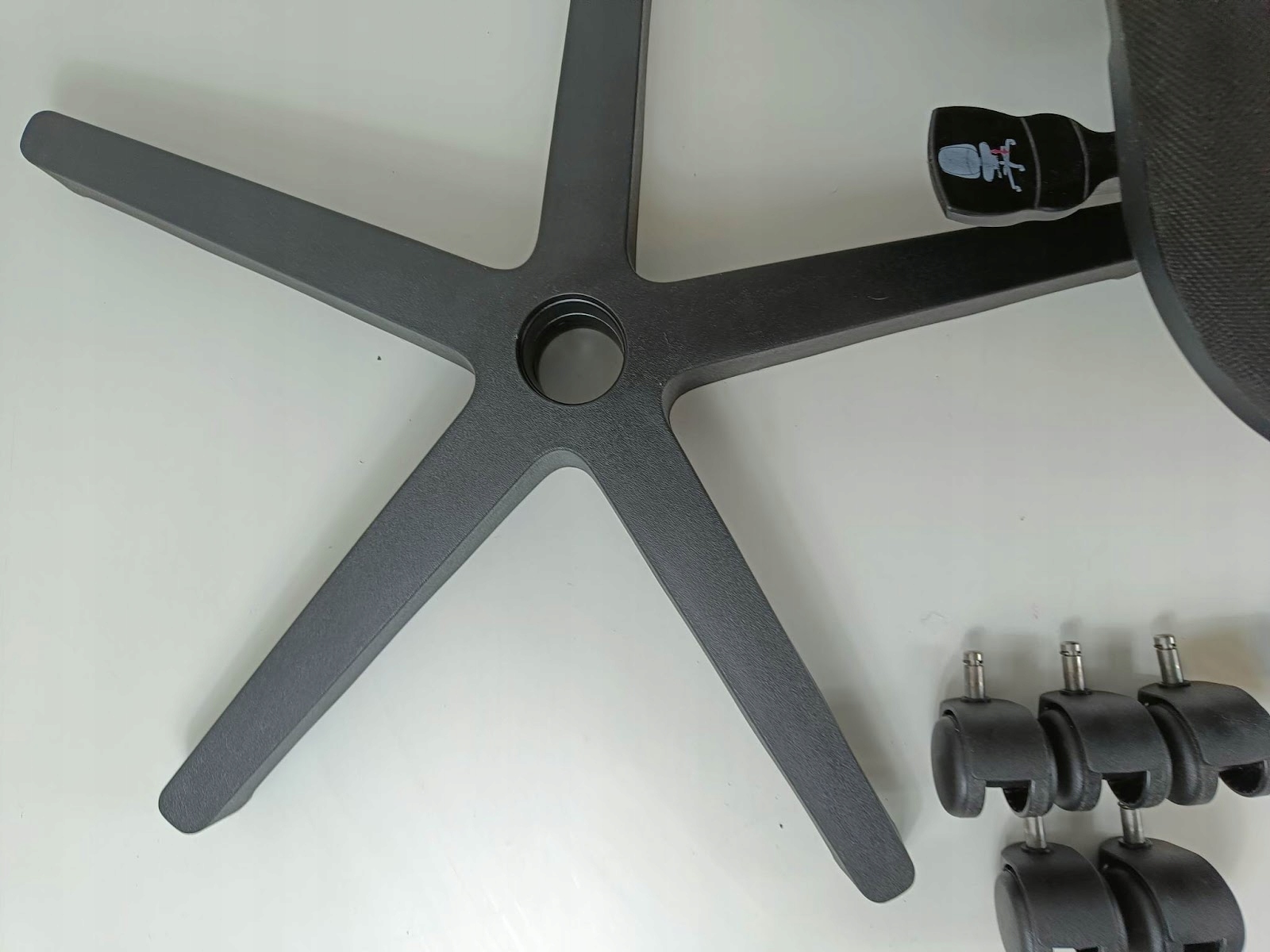 - Спинка с сетчатым чехлом черного цвета (100 % полиэстер), сиденье с черным тканевым чехлом (100 % полипропилен)