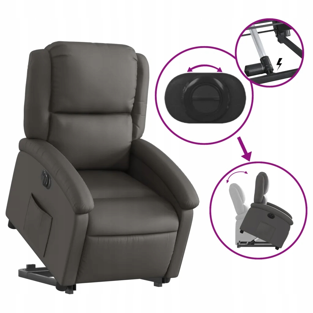 Кресло с откидной спинкой и функцией подъема и раскладывания - серый