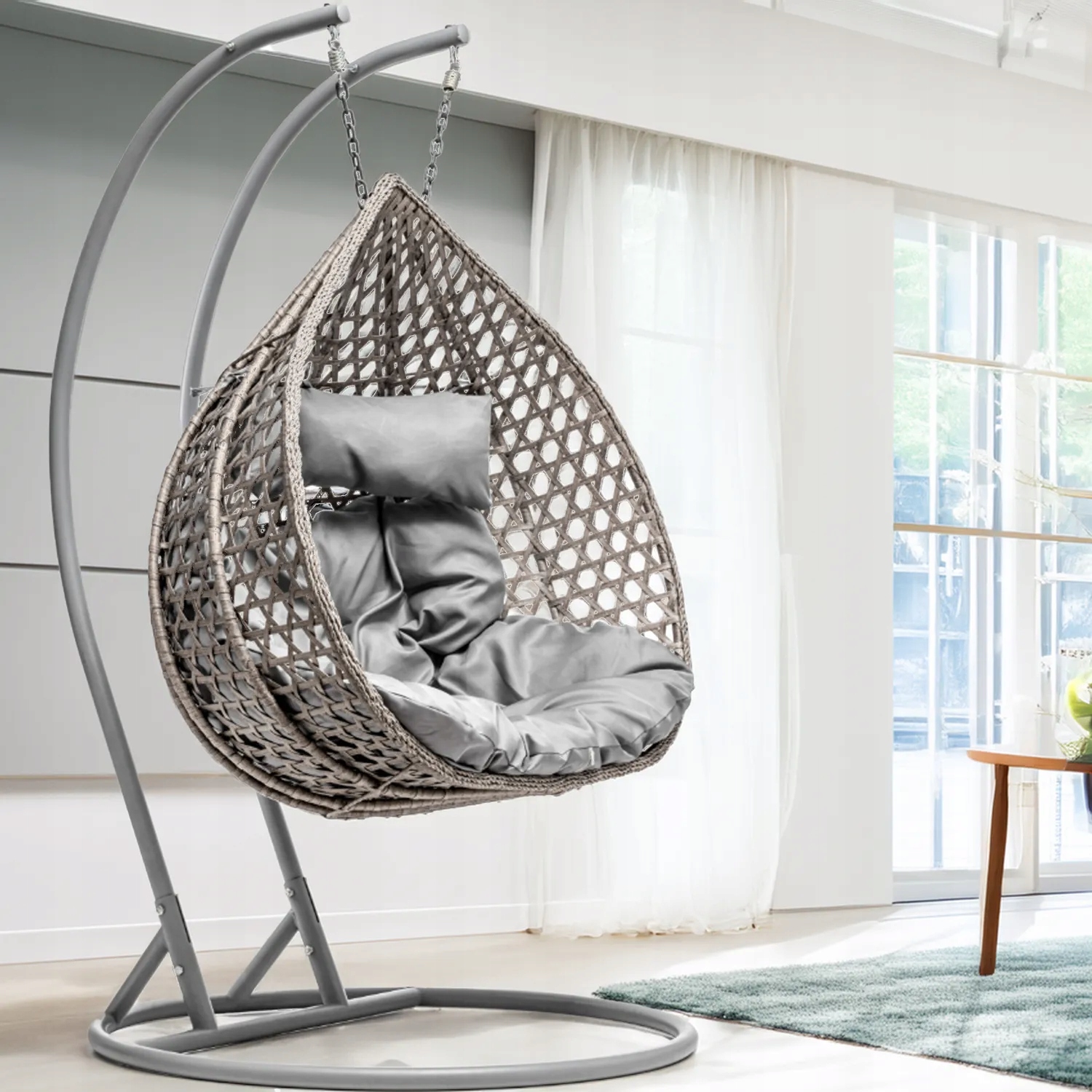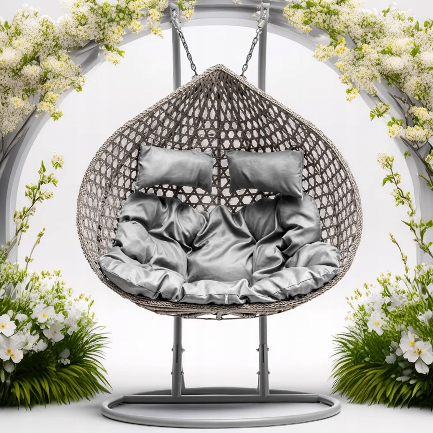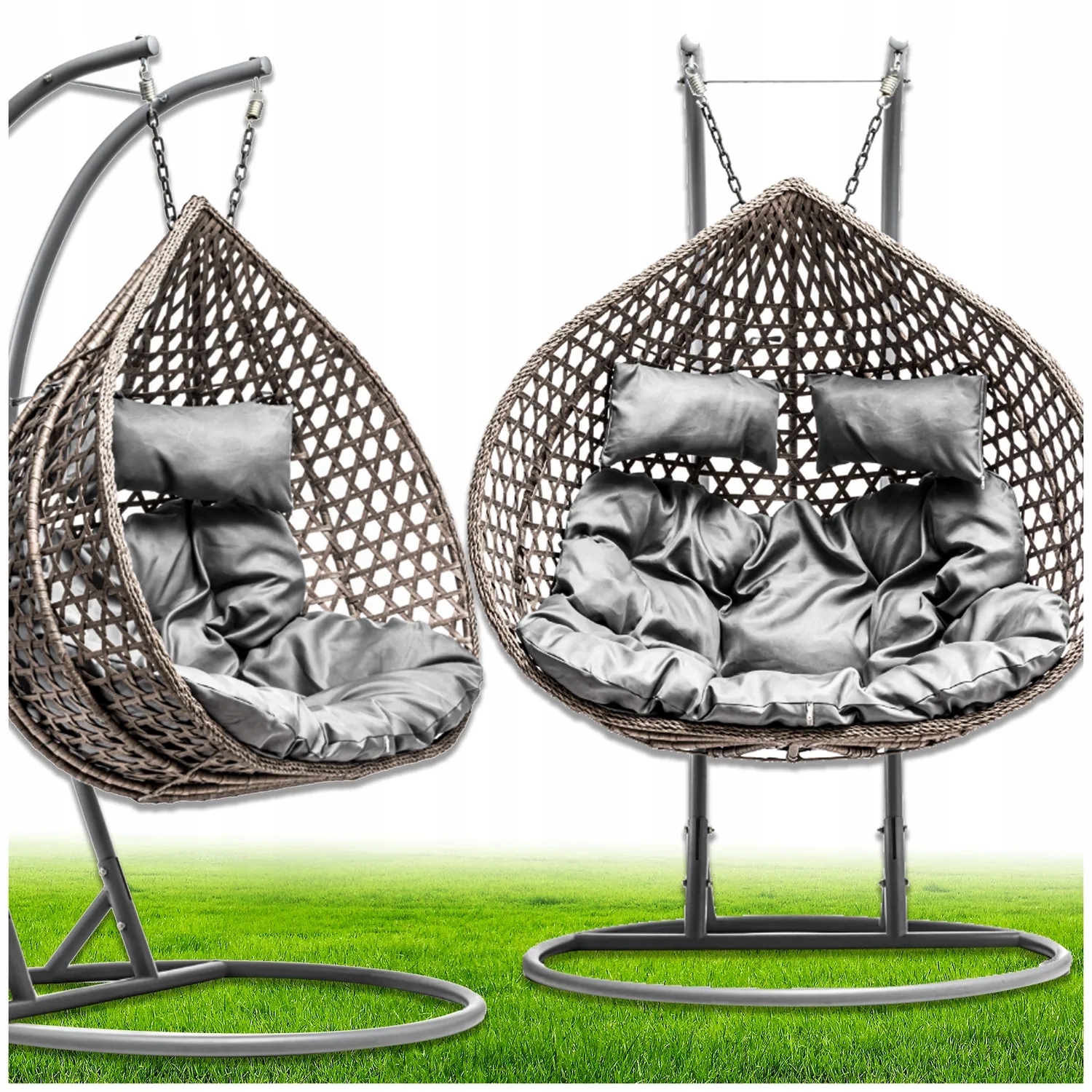 ДВОЙНОЙ ПОДВЕСНОЙ СТУЛ КАКОН КОРЗИНА КАЧЕЛИ ПРЕМИУМ СЕРЫЙ ГРУБОГО плетения