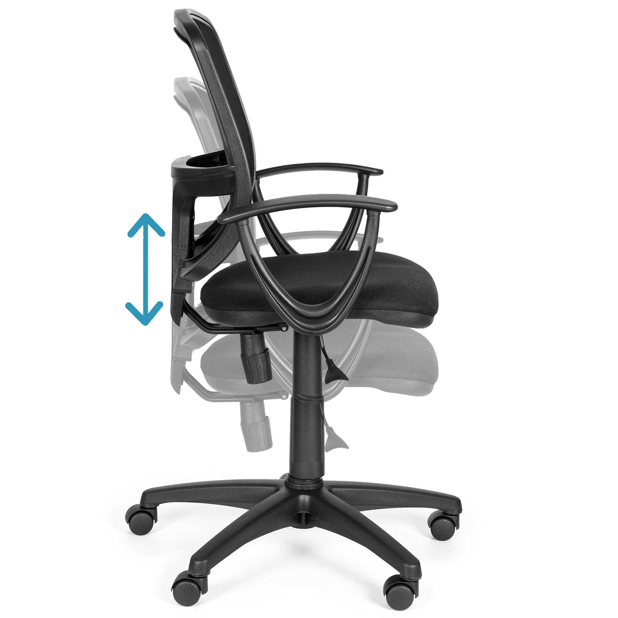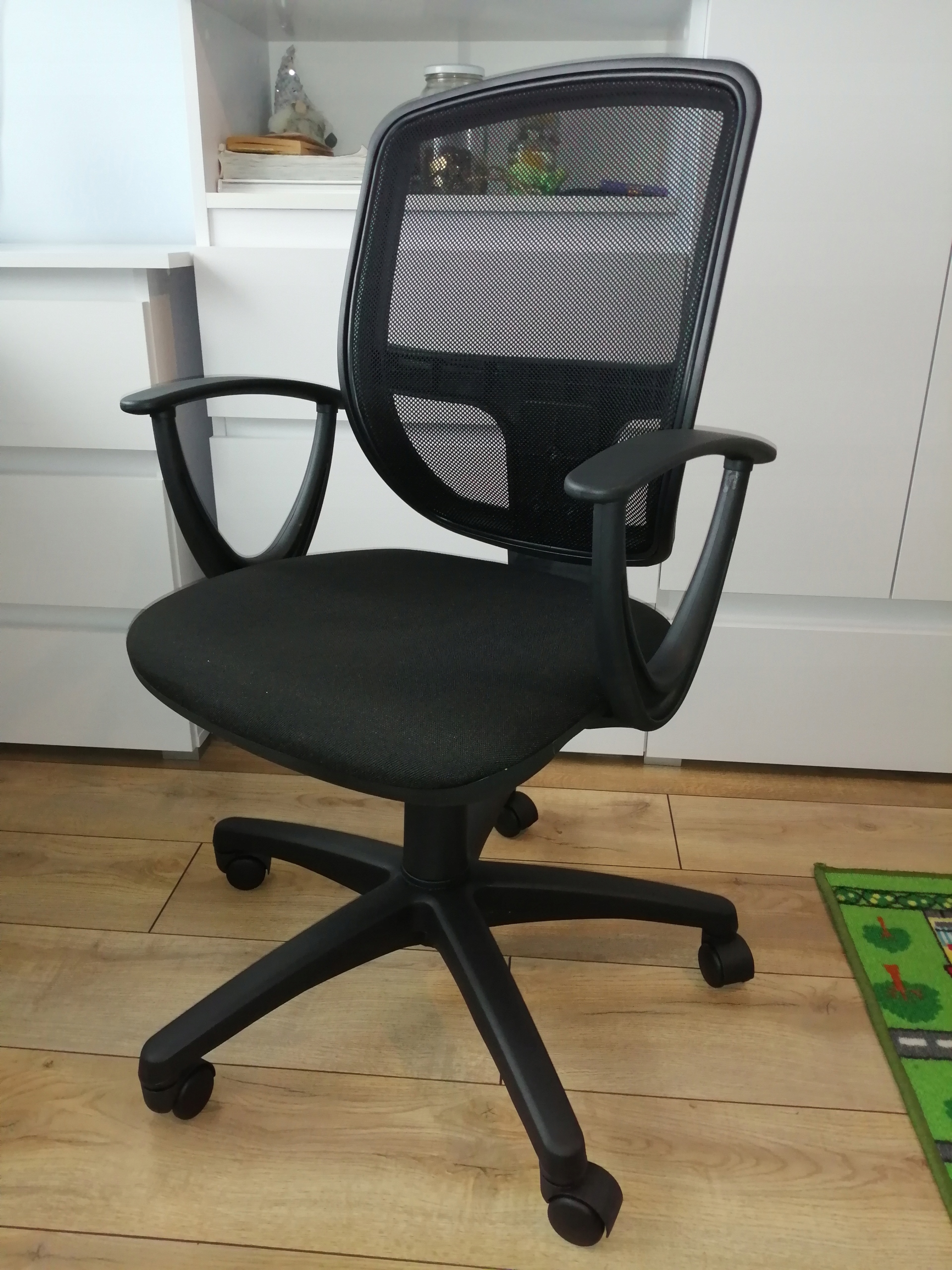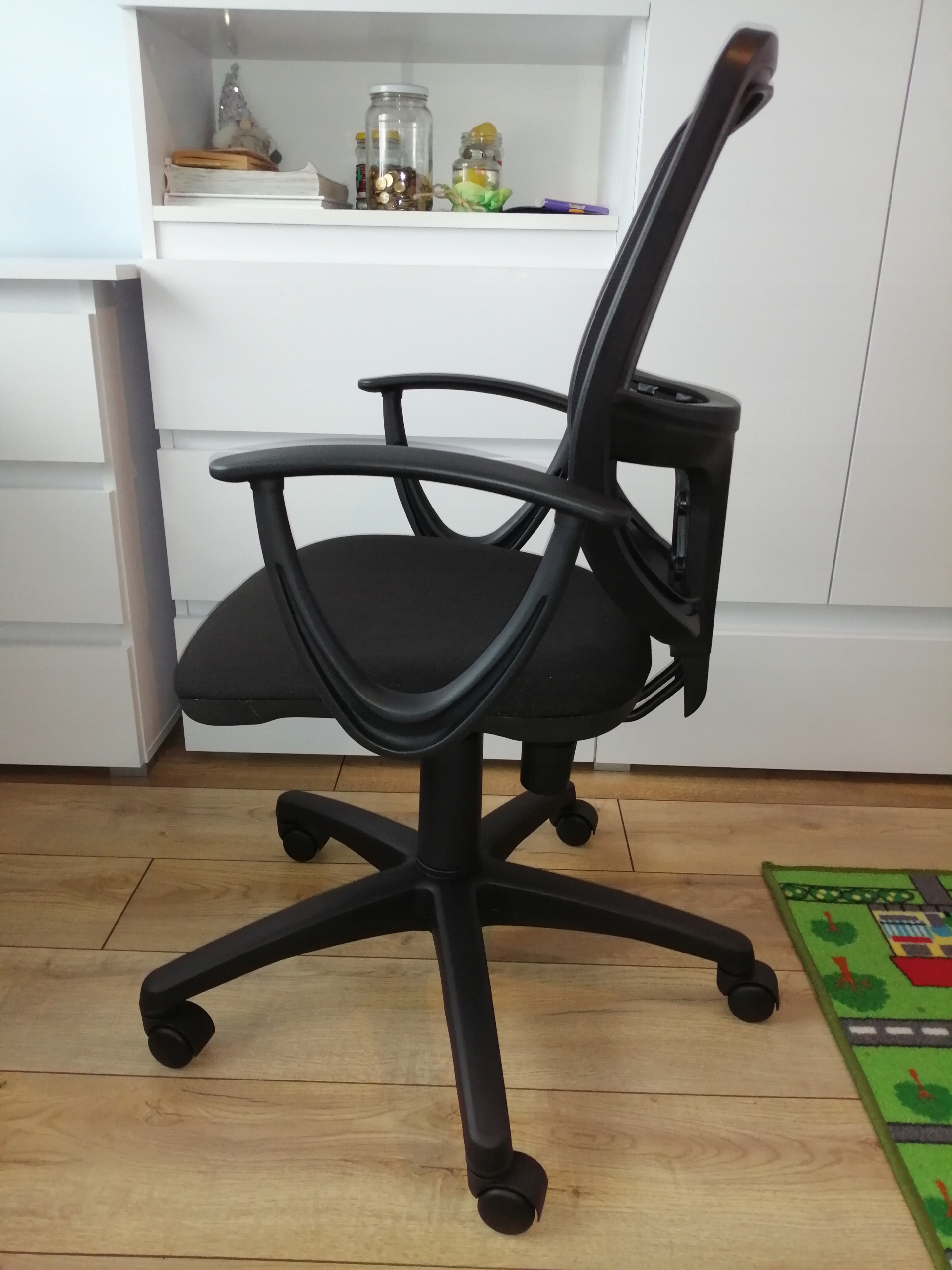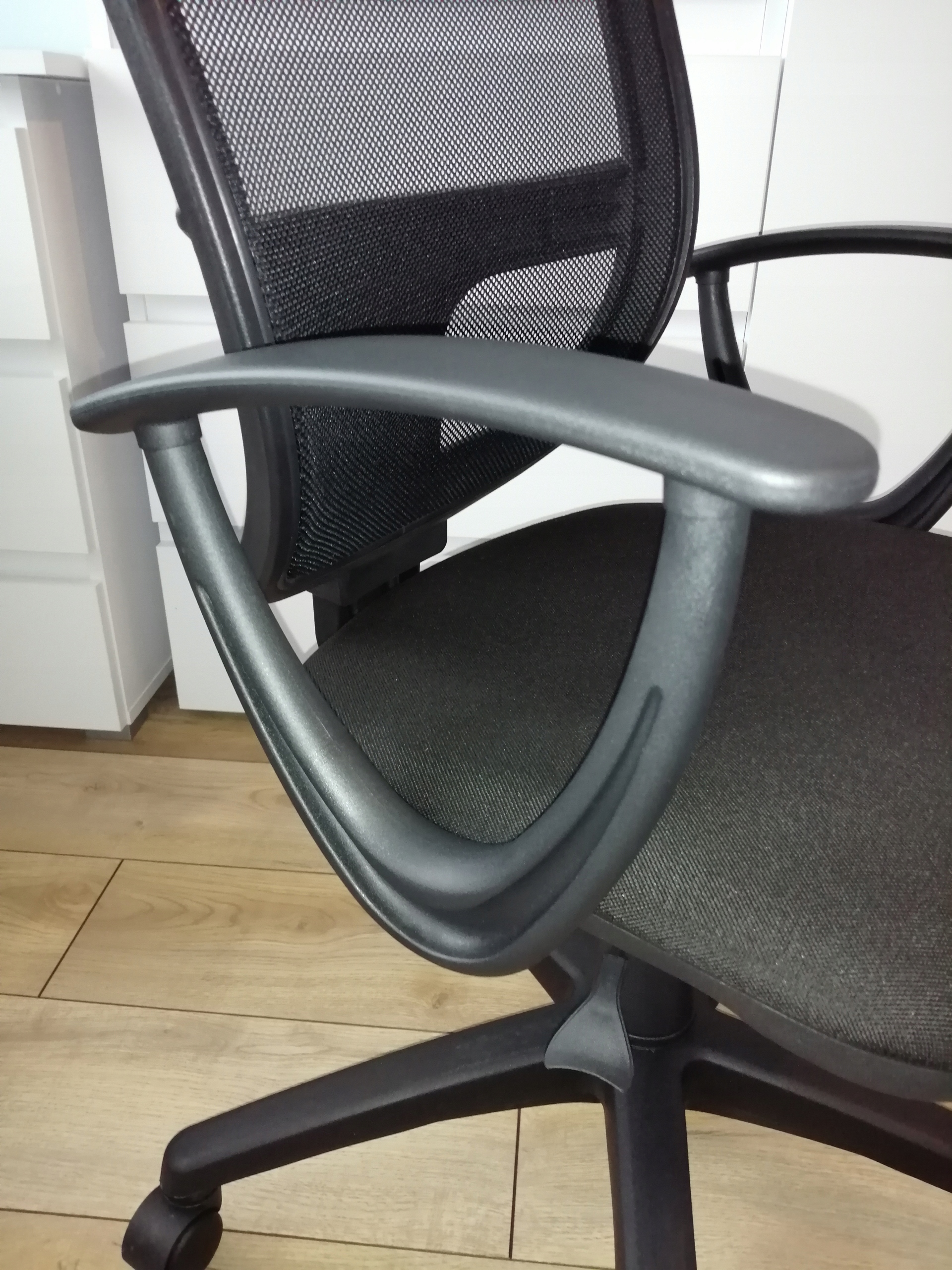 - Он имеет мягкое сиденье и эргономичную профилированную спинку из дышащей сетки
