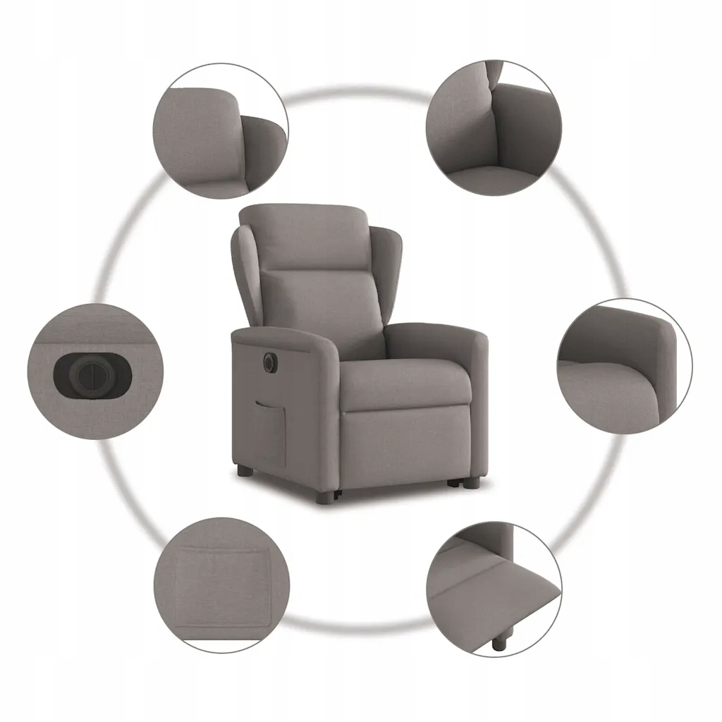 Кресло-реклайнер с подъемным механизмом, электрическое, серо-коричневый, ткань