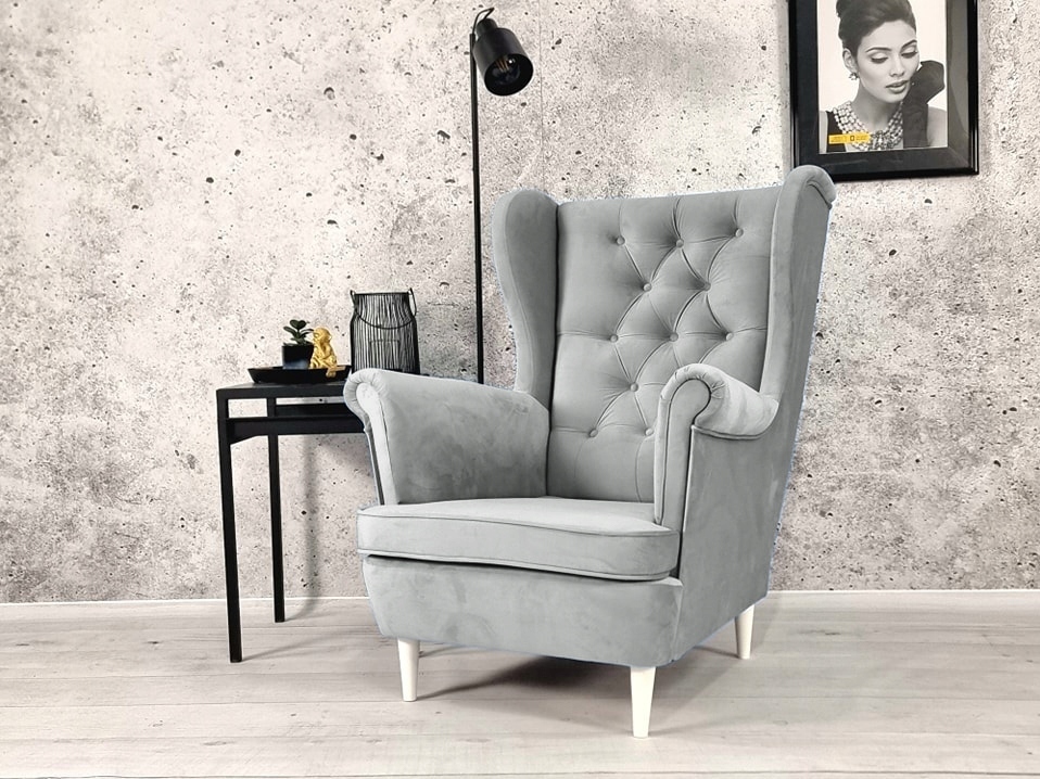 КРАСИВОЕ БОЛЬШОЕ КРЕСЛО NOBI ВЫБРАННОГО ЦВЕТА С ПРЯМЫМИ НОЖКАМИ, ГЛУБОКО ПРОСТЁГАНЫМИ АЛМАЗНЫМИ ПУГОВИКАМИ