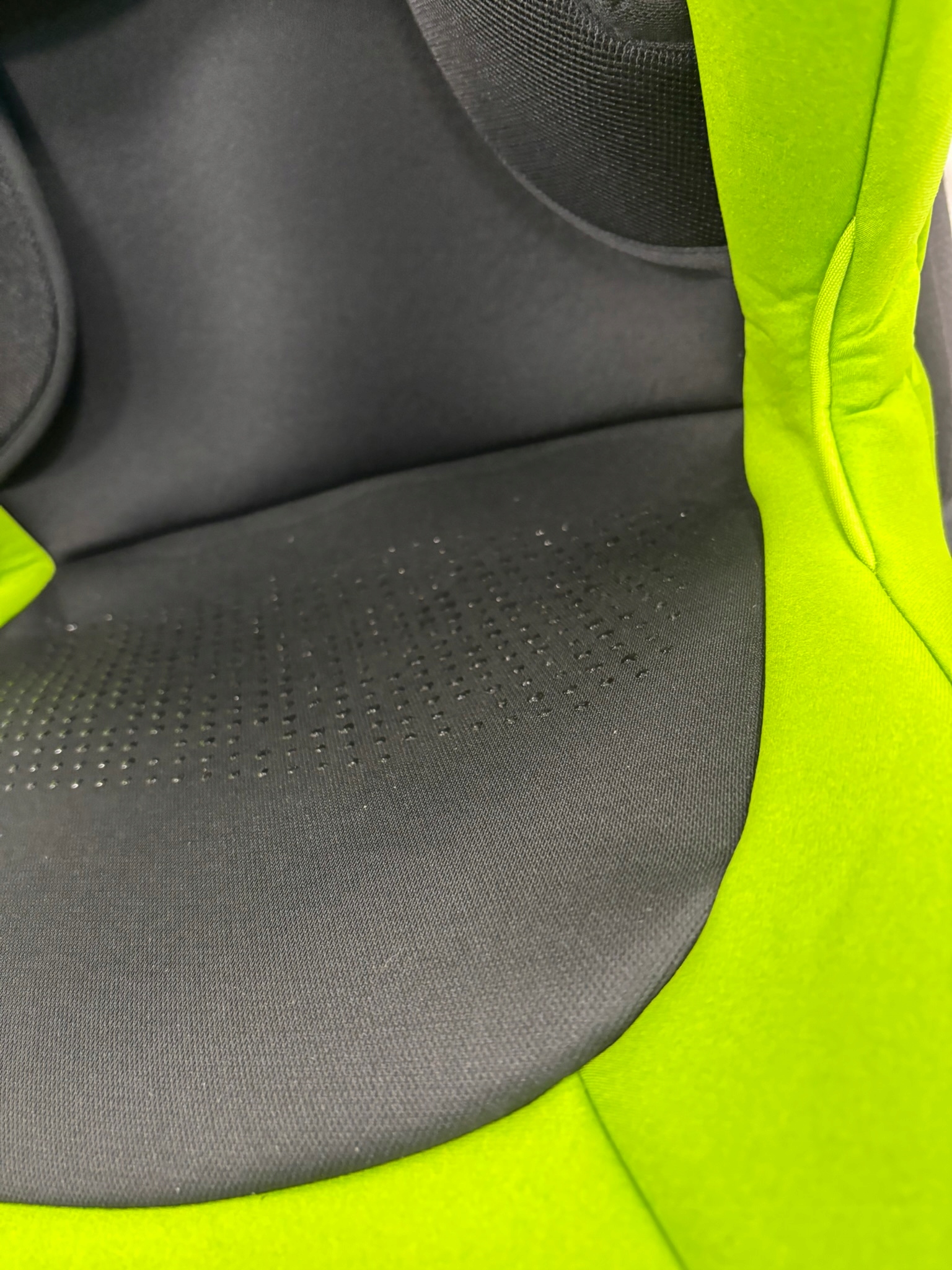 Интересно, что, несмотря на отсутствие типичных подлокотников в качестве нижних направляющих ремня или отсутствие четвертой точки прокладки ремня между ногами ребенка, продуманная форма ремня конструкция сиденья влияет на очень важное и правильное расположение поясного ремня.
