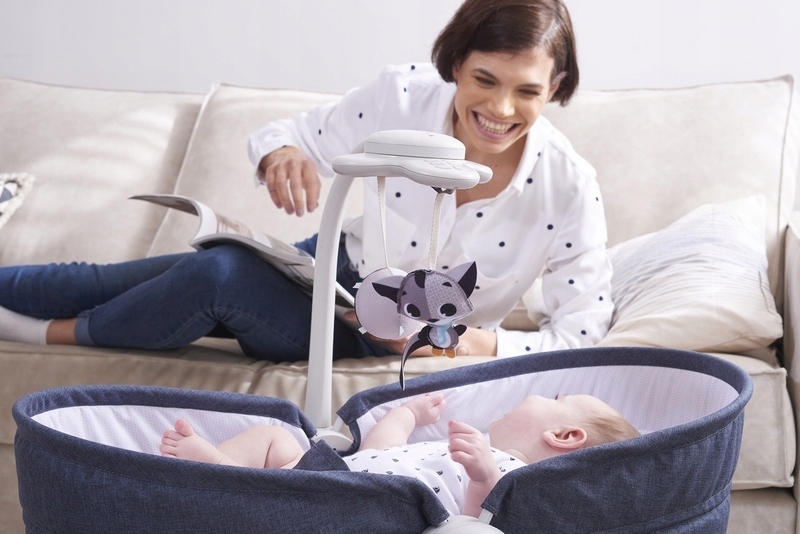 - активируемая ребенком светомузыкальная игрушка с 9 мелодиями. Игрушку можно устанавливать под разными углами, а также поворачивать на 180 градусов, что облегчает доступ родителей к ребенку.