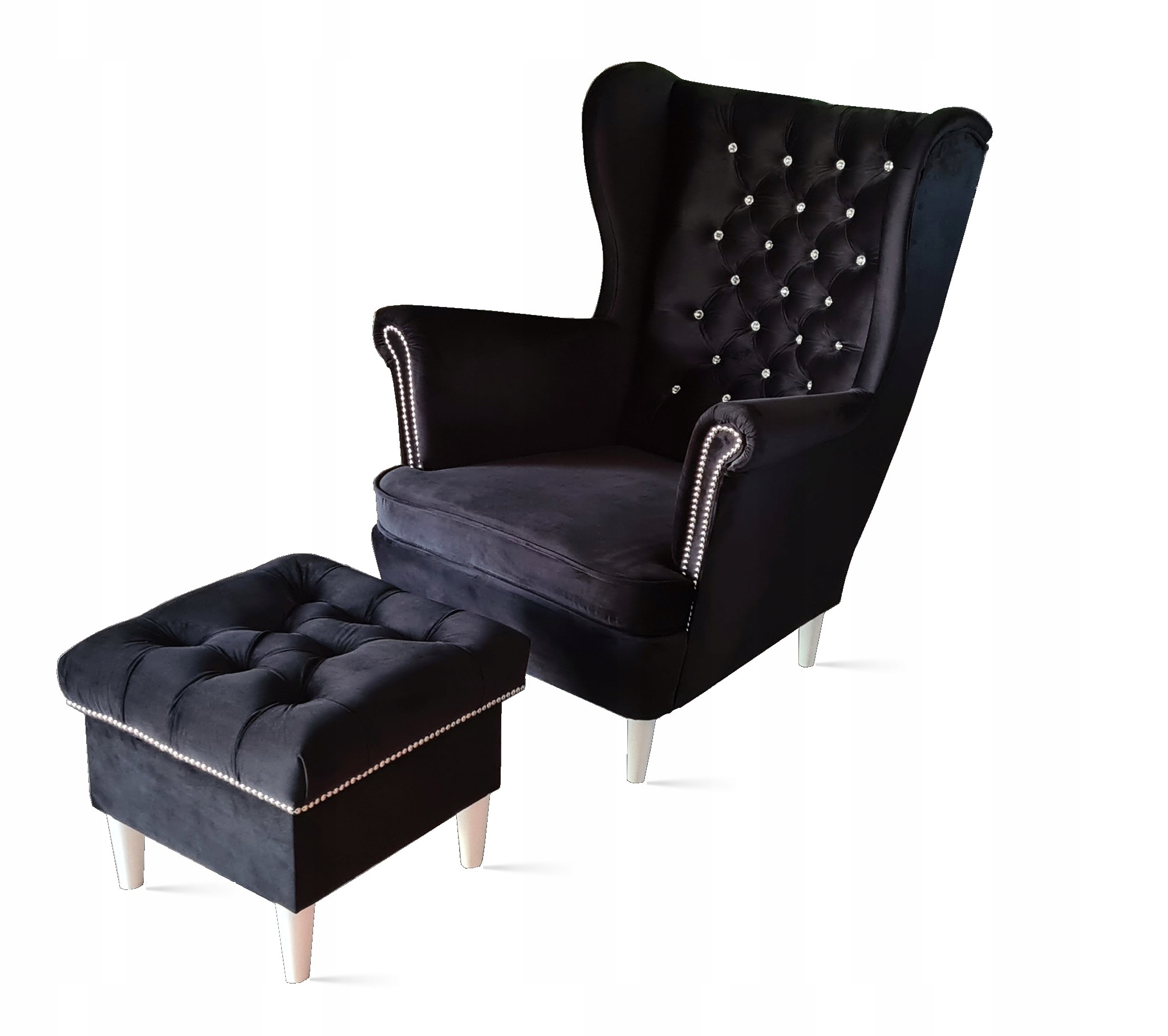 Кресло Uszak Glamour Chesterfield + подставка для ног Chesterfield с открытым ящиком