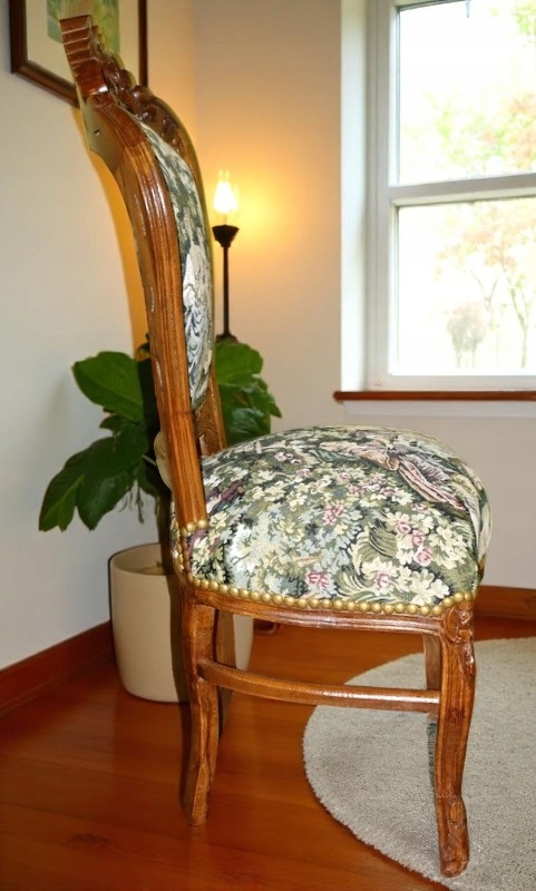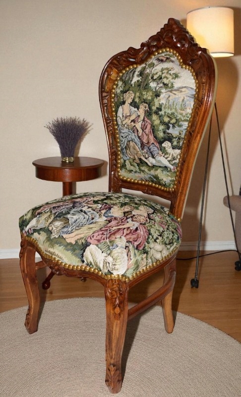 Стул в стиле барокко, темный материал, тип гобелен, в придворных фигурах