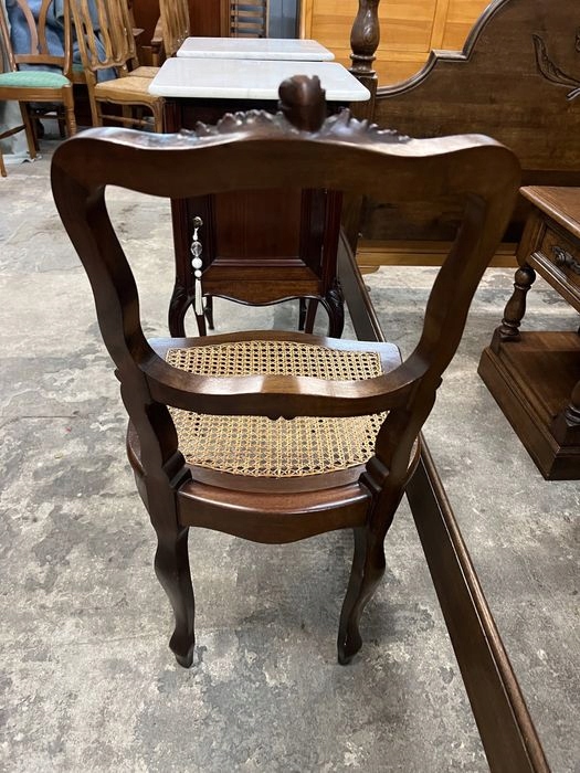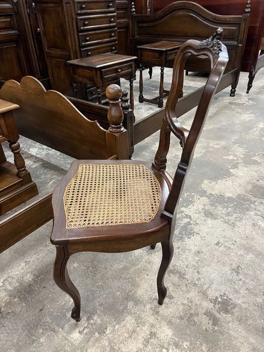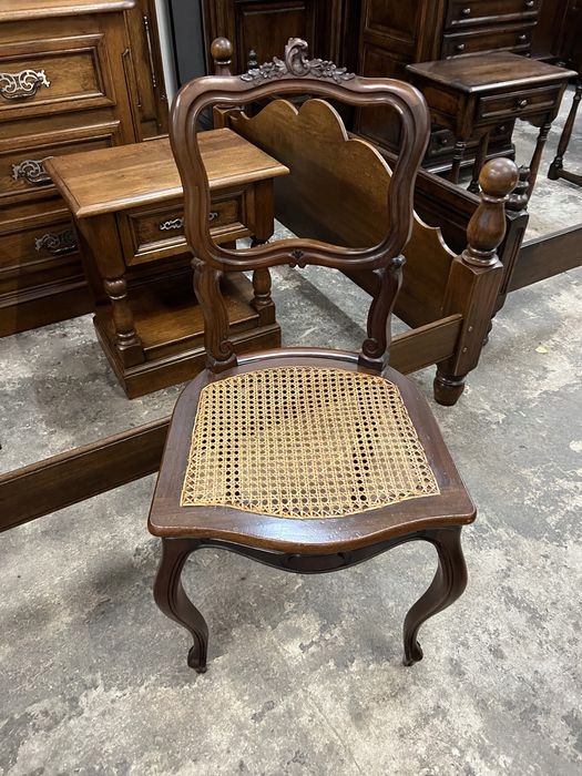 Предмет продажи — красивый устойчивый стул с рафией на сиденье в стиле рокай. Стабильный, полностью из рафии, дерево имеет небольшие следы использования. Возможен транспорт или самовывоз. Товар доступен в магазине в Пионках.