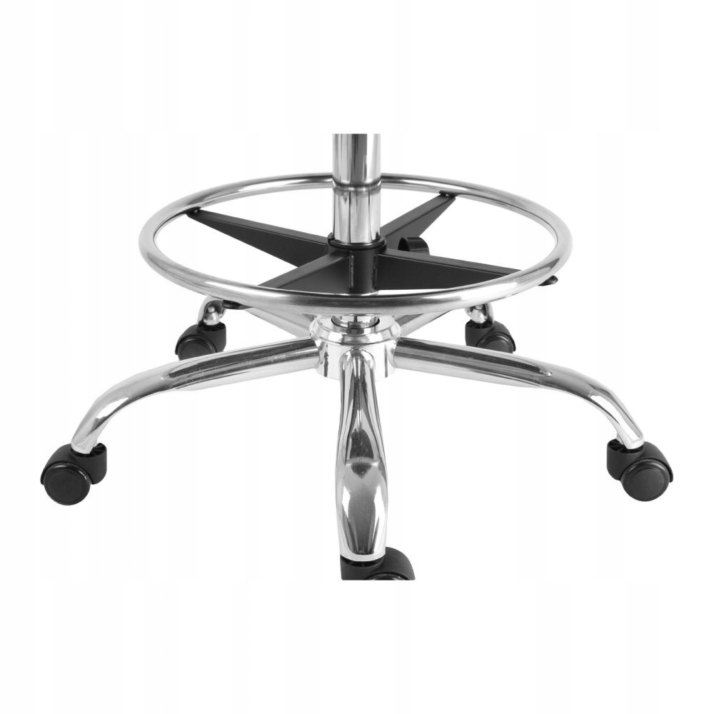 Сиденье регулируется по высоте, а если кресло необходимо использовать на высокой поверхности, то также пригодится круглая металлическая подставка для ног, которую также можно регулировать по высоте.