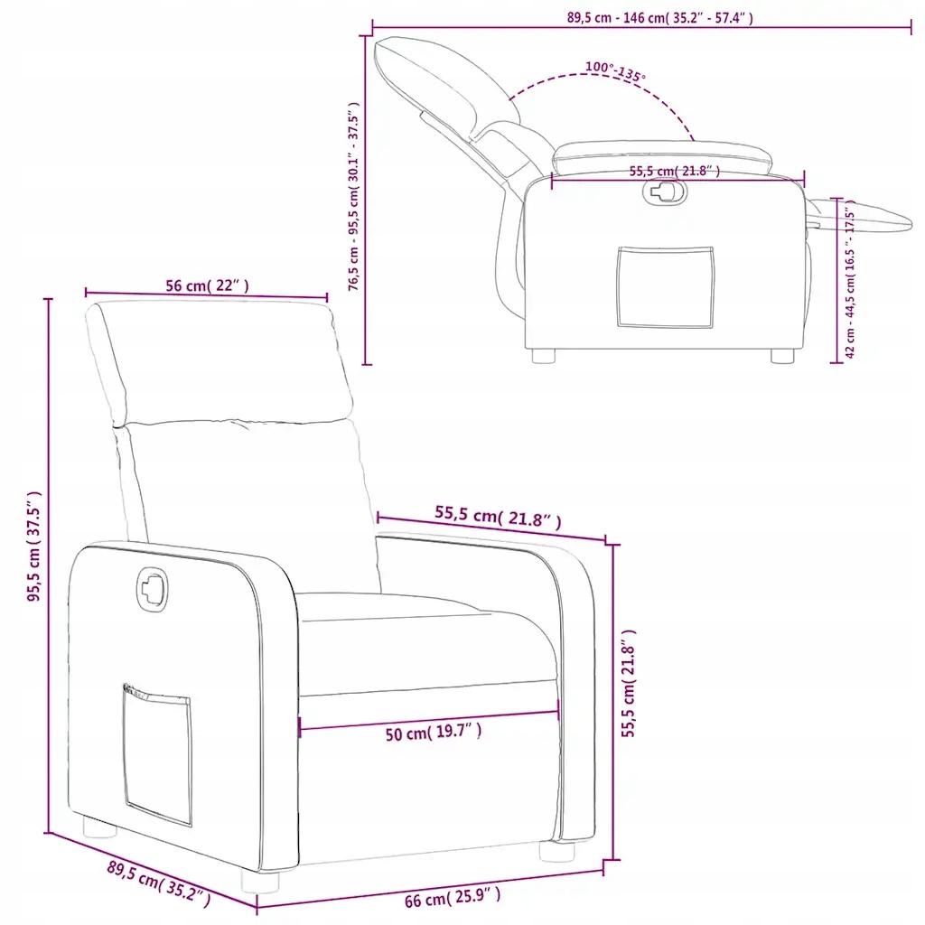 - Размеры в положении лежа: 66 x 146 x 76,5 см (ширина x Глубина x)