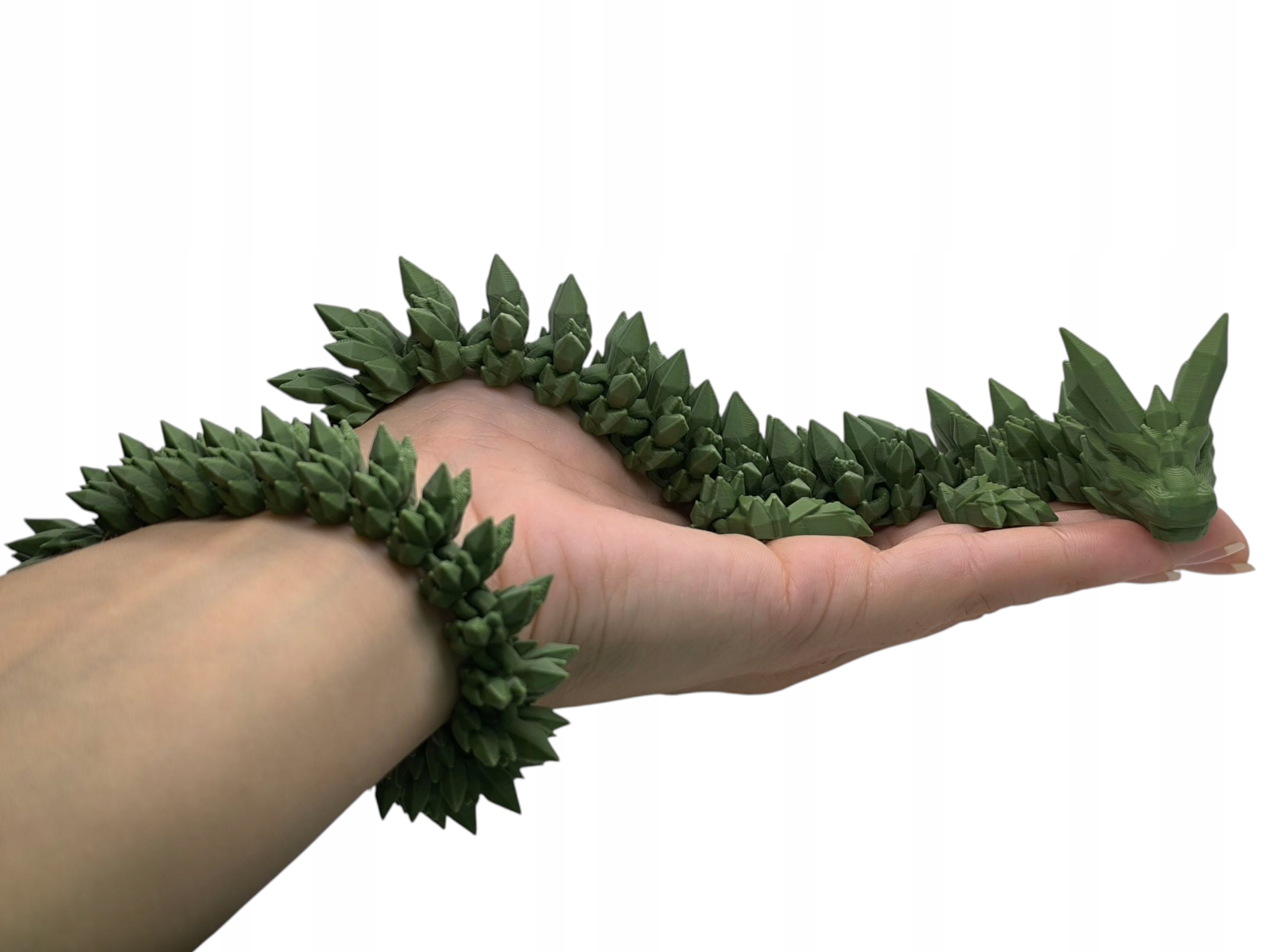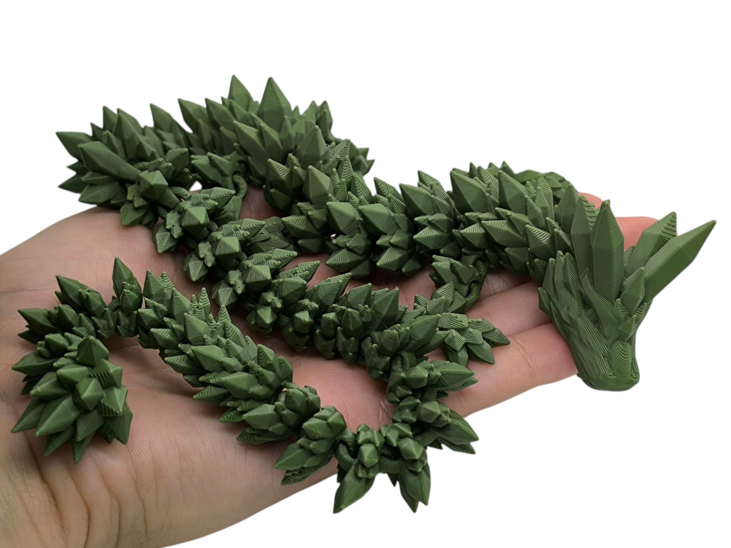 Откройте для себя совершенно нового кристаллического дракона с впечатляющей длиной до 40 см! Эта уникальная модель была создана из экологической игры в сочном зеленом цвете, которая прекрасно отражает свет и привлекает внимание на полку каждого коллекционера. Фигурана была разработана так, чтобы ослепить не только детали и современные геометрические линии, но и полную подвижность - целых 49 сегментов (с лапами) позволяют вам поставить дракона на различные позиции.