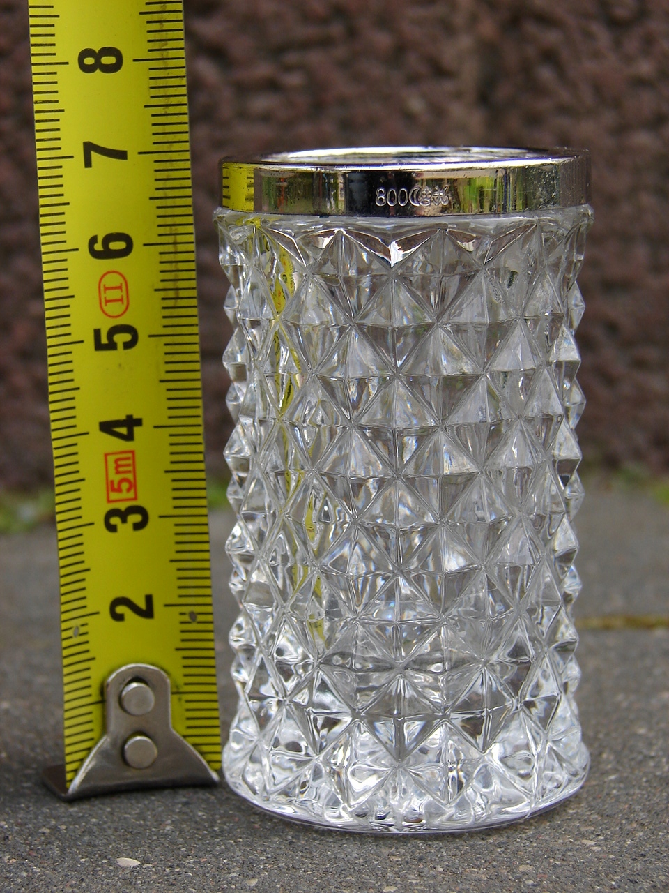Хрустальный контейнер для зубочисток, верхняя часть снабжена кольцом из чистого серебра 800 пробы.