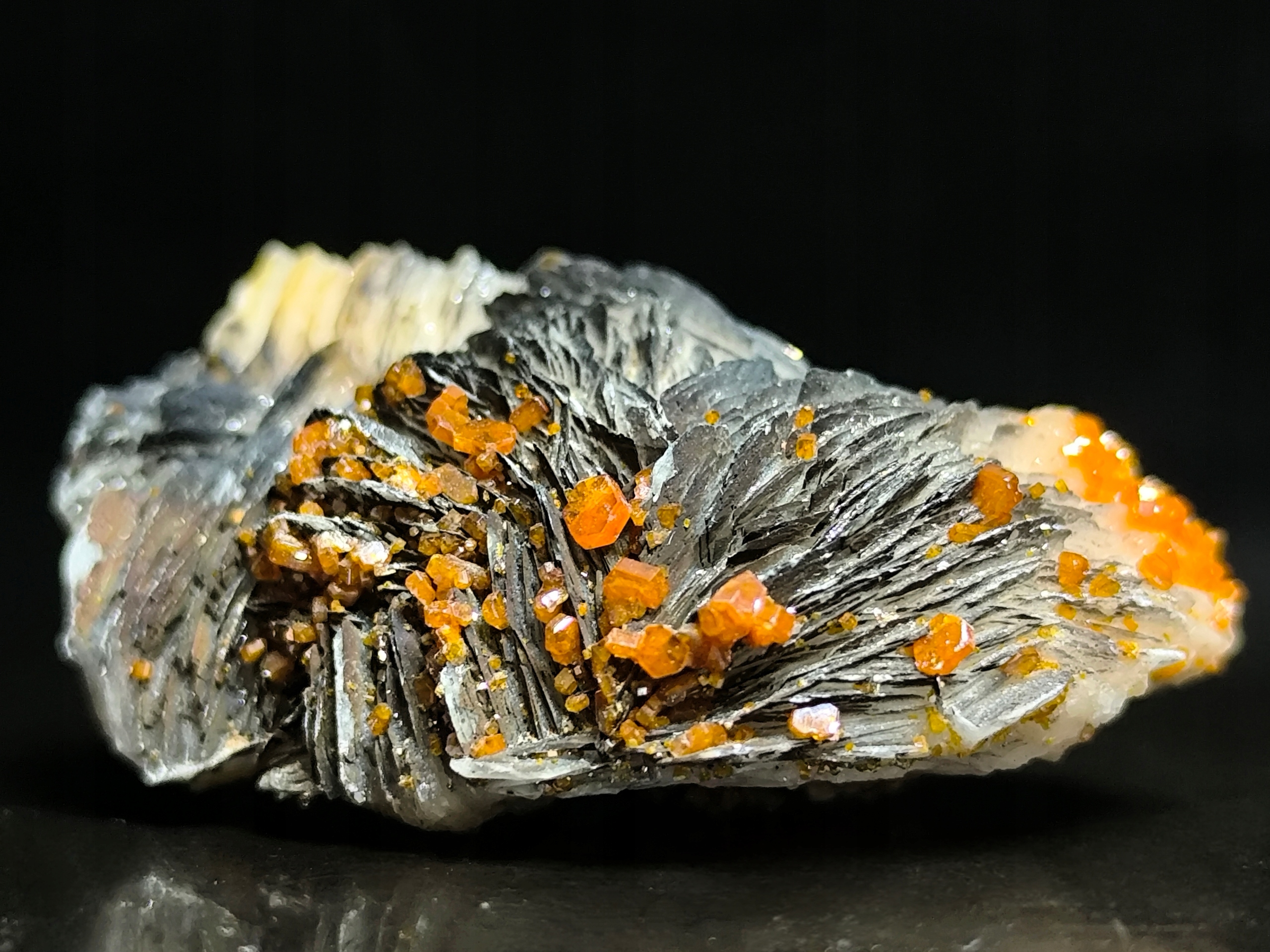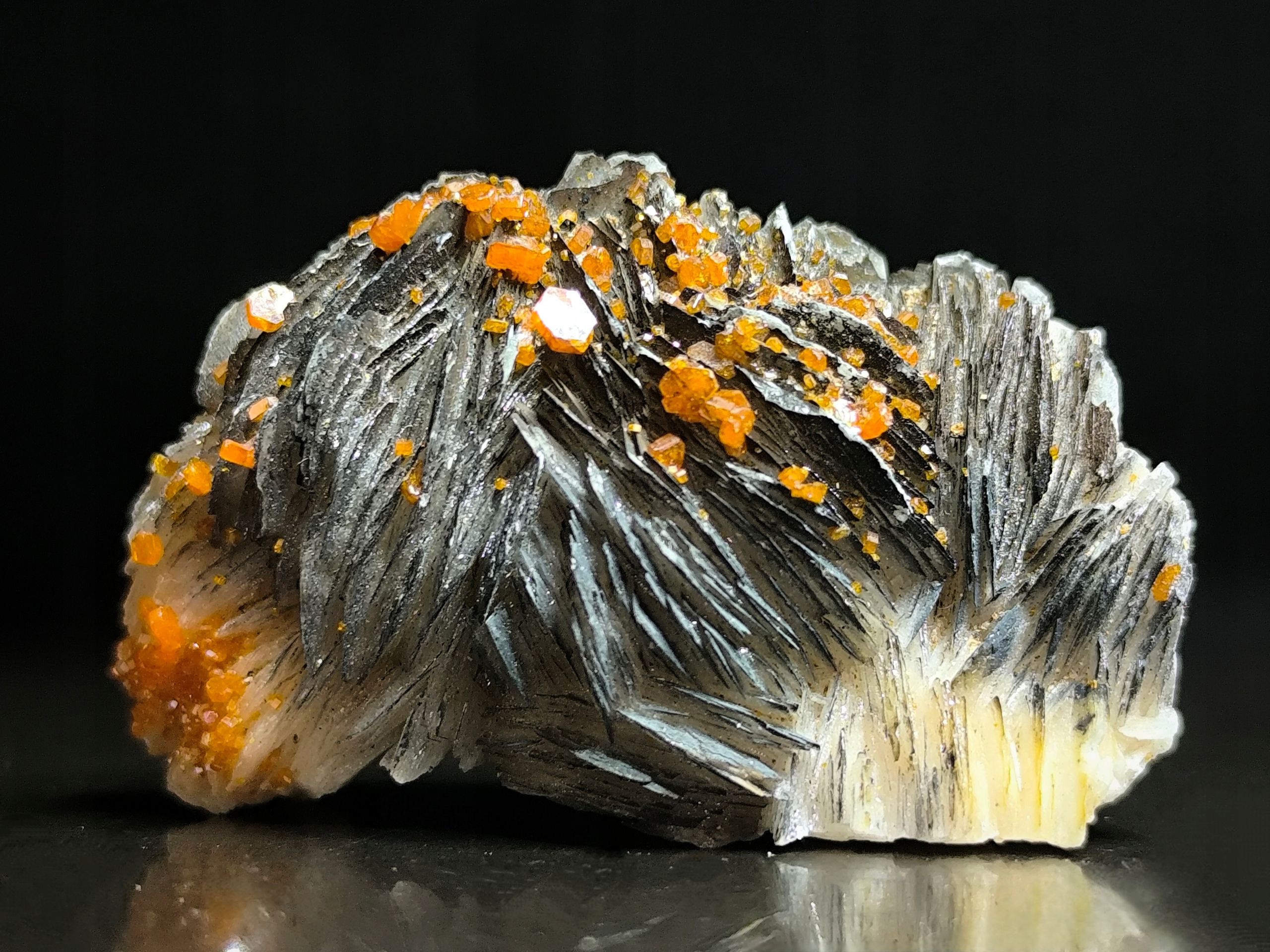 Кристаллы ванадинита на стволе, натуральные минералы Марокко