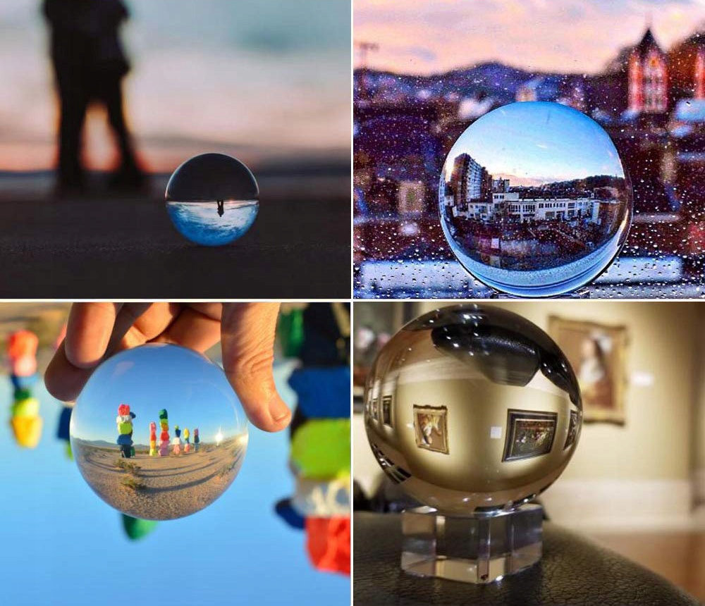 Стеклянный (хрустальный) шар позволяет творчески использовать явление преломления света (преломления) для создания креативных фотографий. Его можно использовать практически во всех обстоятельствах: от пейзажной фотографии широких планов до съемки небольших объектов крупным планом.