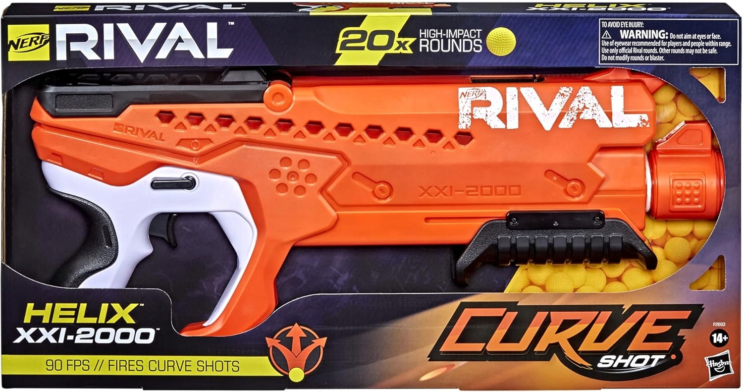 - Кривая конкурента Nerf Shot Helix XXI -100 - имеет ствол, которая вращается на 360 градусов, благодаря которой вы можете стрелять в шарики влево, направо, прямо или вниз, чтобы адаптировать, прицеливаясь к каждой ситуации,