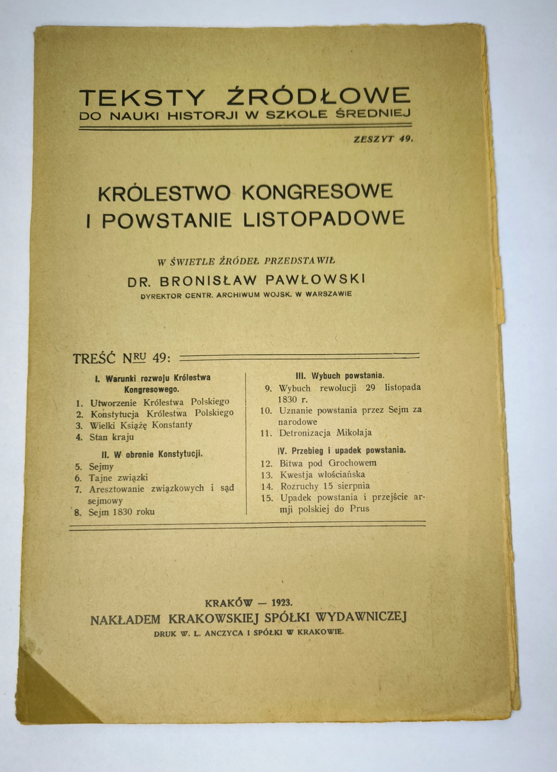 Królestwo Kongresowe i Powstanie List., B. Pawłowski, stara książka z 1923