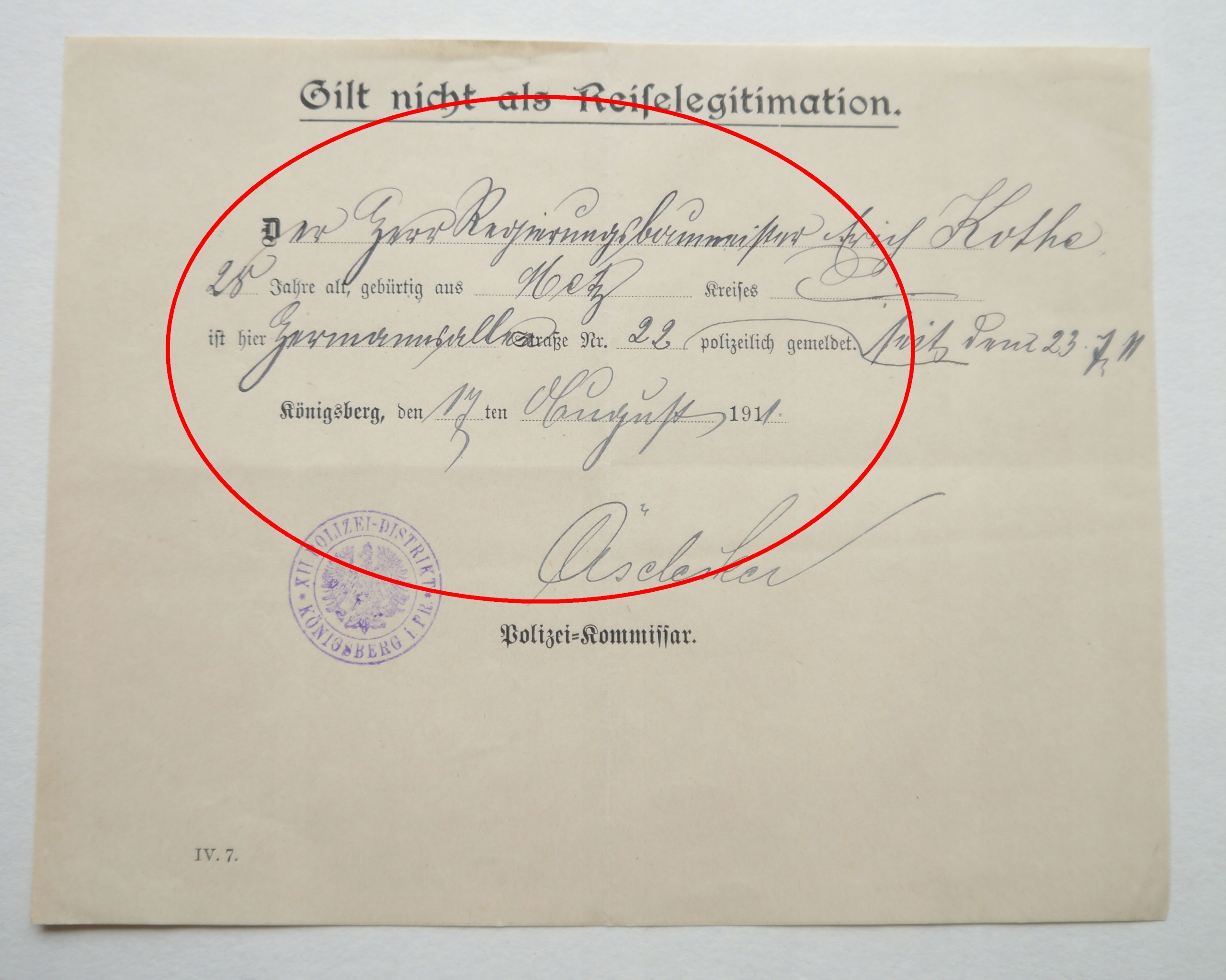 КРОЛЕВЕЦ 1911 КЕНИГСБЕРГ ВРЕМЕННАЯ РЕГИСТРАЦИЯ ОТ 1 ЗЛЫХ
