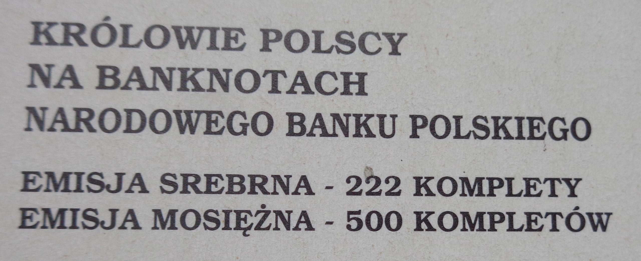 Królowie Polscy na Banknotach Narodowego Banku Polskiego - nakład 500