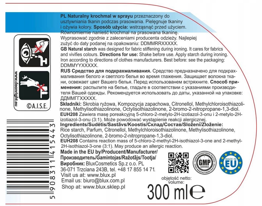 Оплачивая «Крохмаль Blux рідкий 300 мл» данное изделие из «Крахмалы» вы можете быть уверены, что после оформления заказа, доставки в Украину, вы получите именно то, что заказывали, в оговоренные сроки и европейского качества.