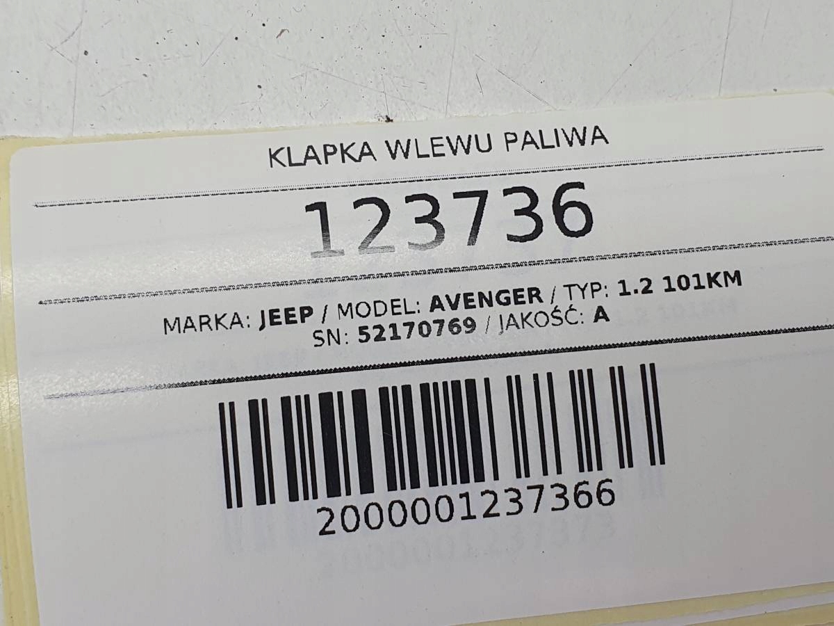 Аукционный субъект: заполнитель топливного залива заполнителя Корк 1.2 Jeep Avenger