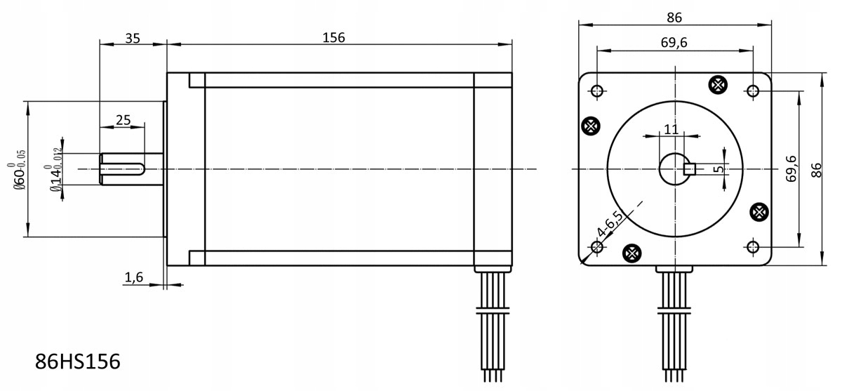 Шаговый двигатель NEMA34 12 Н·м 5,5 А, тип 86HS156-5504