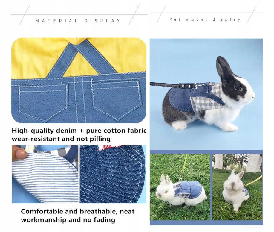 Высокое качество: из высококачественного денима и чистого хлопка, они устойчивы к истиранию, они не ударяются, а материал мягкий и очень удобный. Эти брекеты предоставят вашему питомцу полный комфорт. Повод долговечен и долговечен, его нелегко повредить, а мелкие животные не могут убежать. Он содержит быстрый разъем и металлическое кольцо для подключения поводка. Толстые, твердые зажимы гарантируют безопасность и стабильность