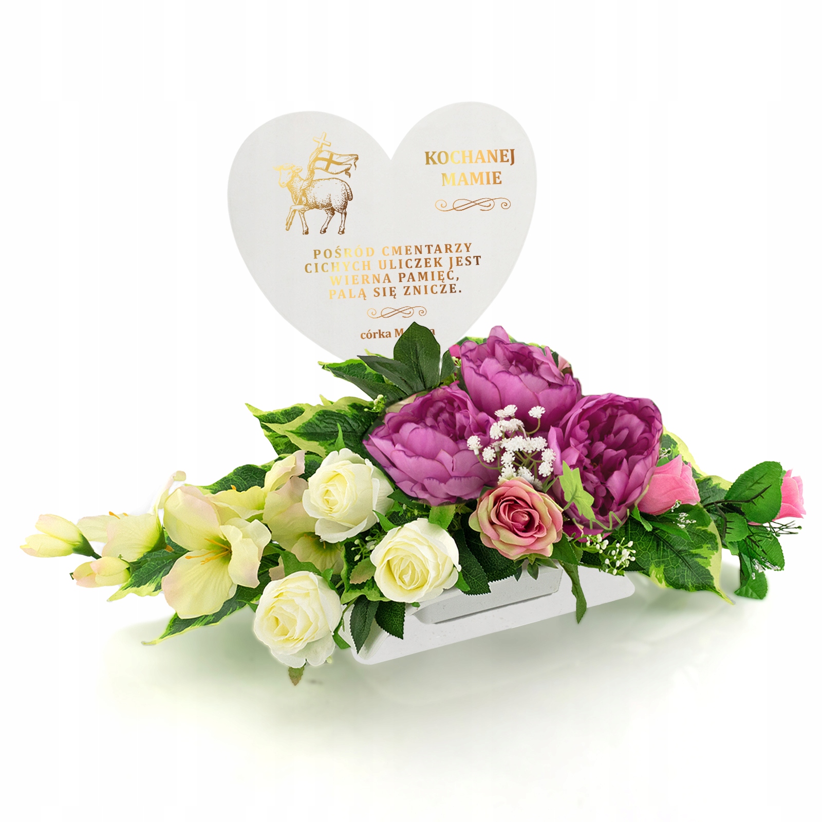 Украшение кладбища - букет искусственных цветов на металлической подставке с персонализацией