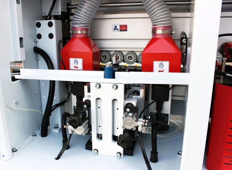 Машина рассчитана на использование двух видов клея: ЭВА и ПУР. В стандартной комплектации он оснащен двумя резервуарами для клея, что позволяет осуществлять быструю замену различных видов клея.