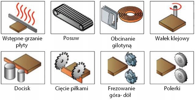 нанесение клея на край доски. Регулируемый слой клея-расплава наносится клеевым валиком, погруженным в нагретый резервуар для клея. Бак покрыт тефлоном и имеет 5 нагревателей общей мощностью 1200 Вт.