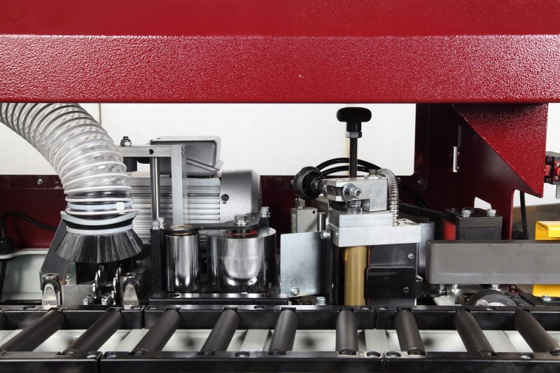 Прямая подача деталей мебели в отдельные обрабатывающие подразделения обеспечивается механической подачей, состоящей из верхнего ленточного питателя и набора роликов в столе. Рычаг с ленточным податчиком можно наклонять более чем на 90 градусов, обеспечивая свободный доступ к обрабатывающим инструментам. Подающая лента и ролики стола покрыты не оставляющей следов резиной и поэтому не оставляют царапин даже на нежной текстуре покрытых досок (например, лакированных досок).