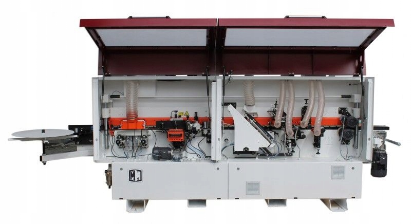 Кромкооблицовочный станок OPTIMAT ONE с предварительным фрезерованием, форматирующей пилой, форматирующей пилой Holzmann FKS305V32ECO с подрезной пилой, многошпиндельным сверлом MAGGI Boring System 21 PRESTIGE, системой удаления опилок Holzmann ABS2480, комплектом дисков REMA ITA, антистатическим шлангом