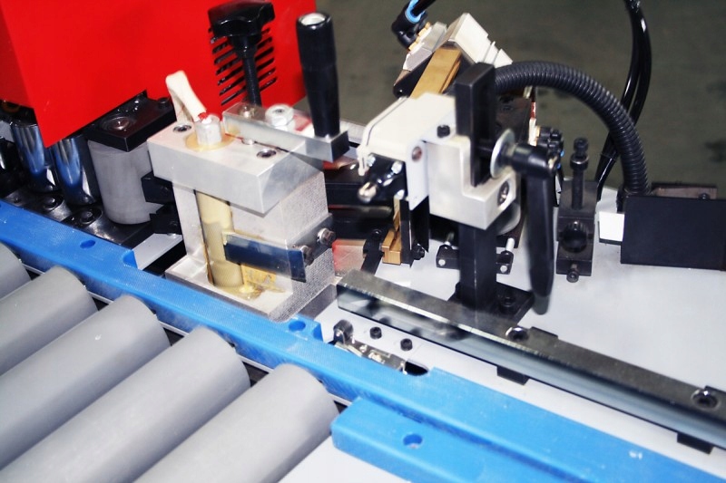 • Кромкооблицовочный станок KAM 115EP оснащен направляющей конвейерной ленты, а не роликовой направляющей.