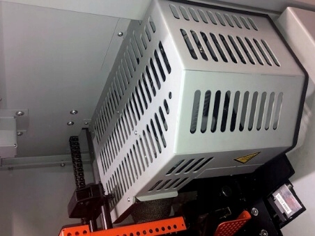 - автоматический запуск с пневматическим управлением валика для нанесения клея и автоматическое открытие дозатора клея - при достижении температуры 170°С дозатор клея открывается автоматически и валик для нанесения начинает вращаться, при выключении машины, когда температура падает ниже 170°С градусов , закрывается заслонка, ответственная за дозировку клея, и останавливается наносящий валик, оператору не нужно помнить об этом действии, это наиболее частые причины утечек клея; здесь это делается автоматически