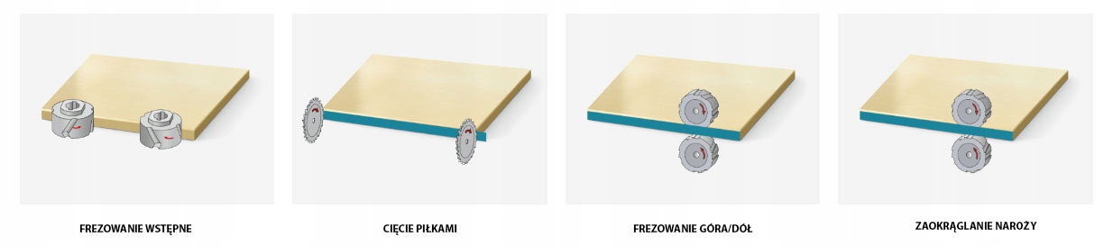 - агрегат, оснащенный фрезерной головкой со сменными пластинами из высокопрочной стали для фрезерования кромки по радиусу, прямо и под углом.